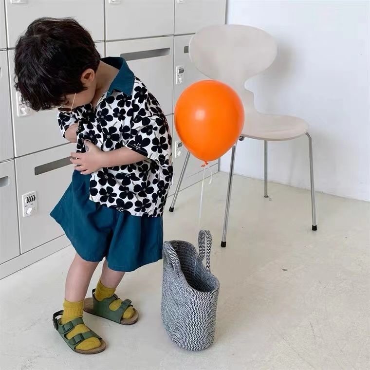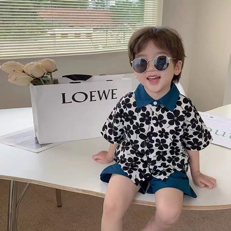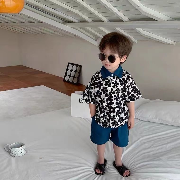 男童Polo领花朵衬衫套装夏季新款儿童宝宝小众复古短袖短裤两件套