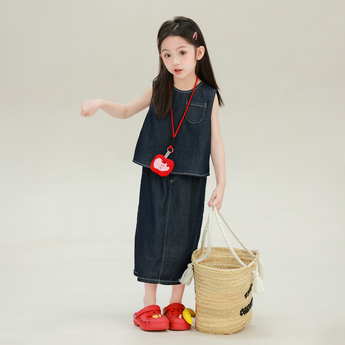 大耳象女童牛仔背心+牛仔半裙2026夏季新款宝儿休闲百搭无袖套装