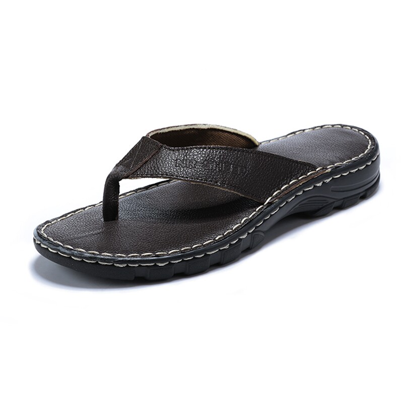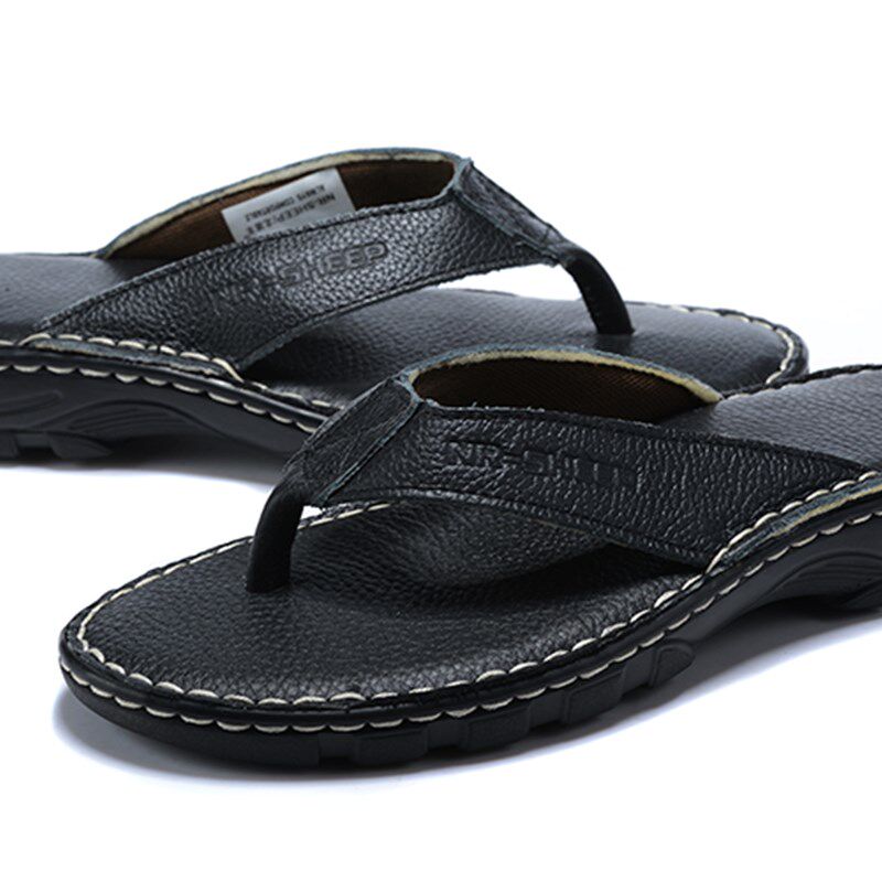 夏季潮牌头层牛皮拖鞋增高厚底真皮凉托鞋纯手工男士夹趾人字拖鞋