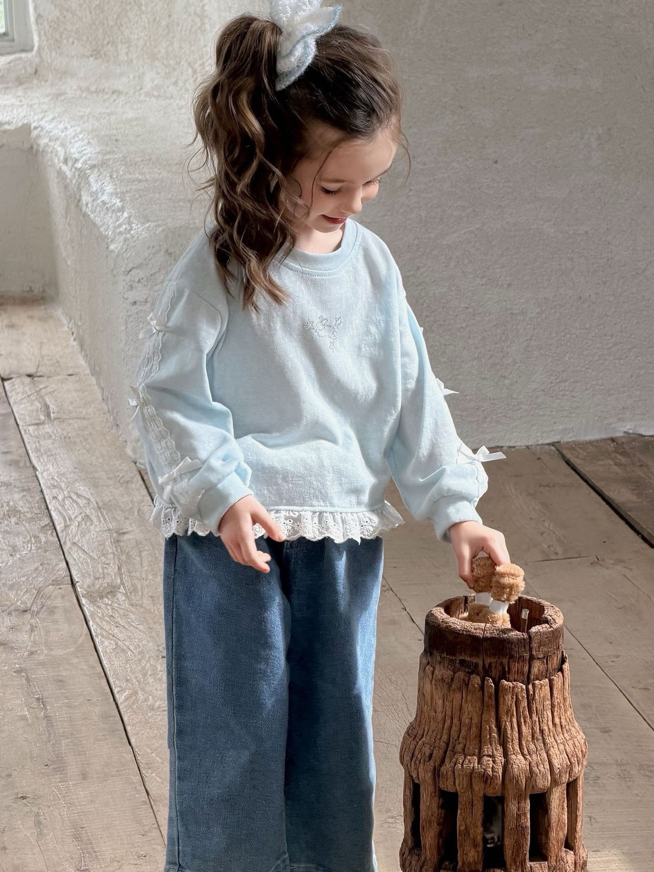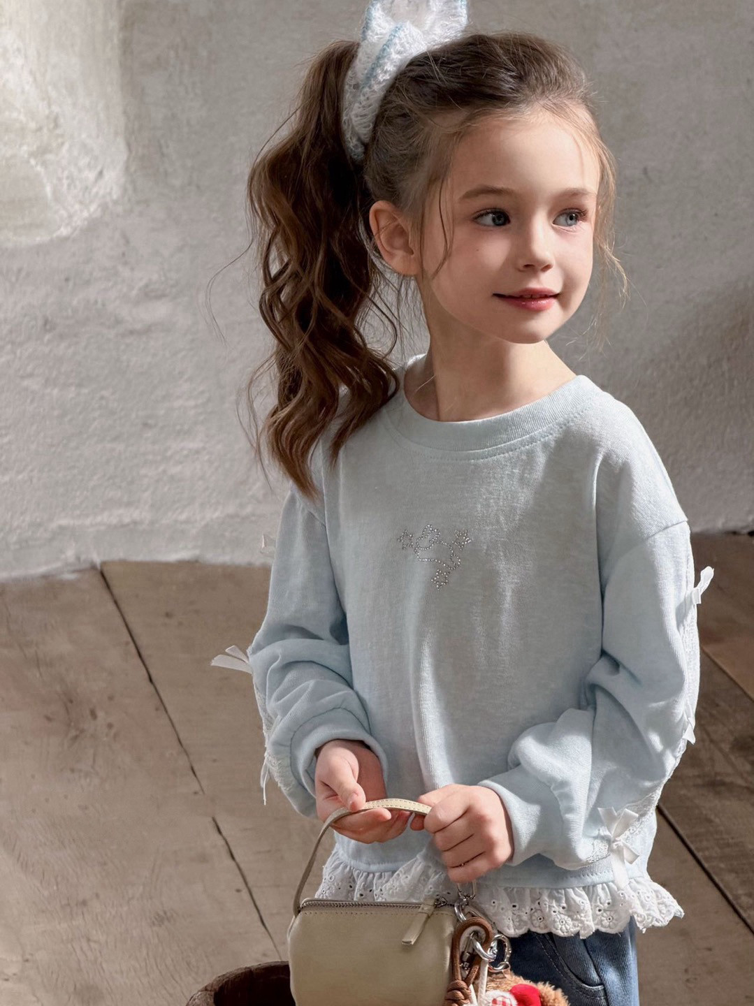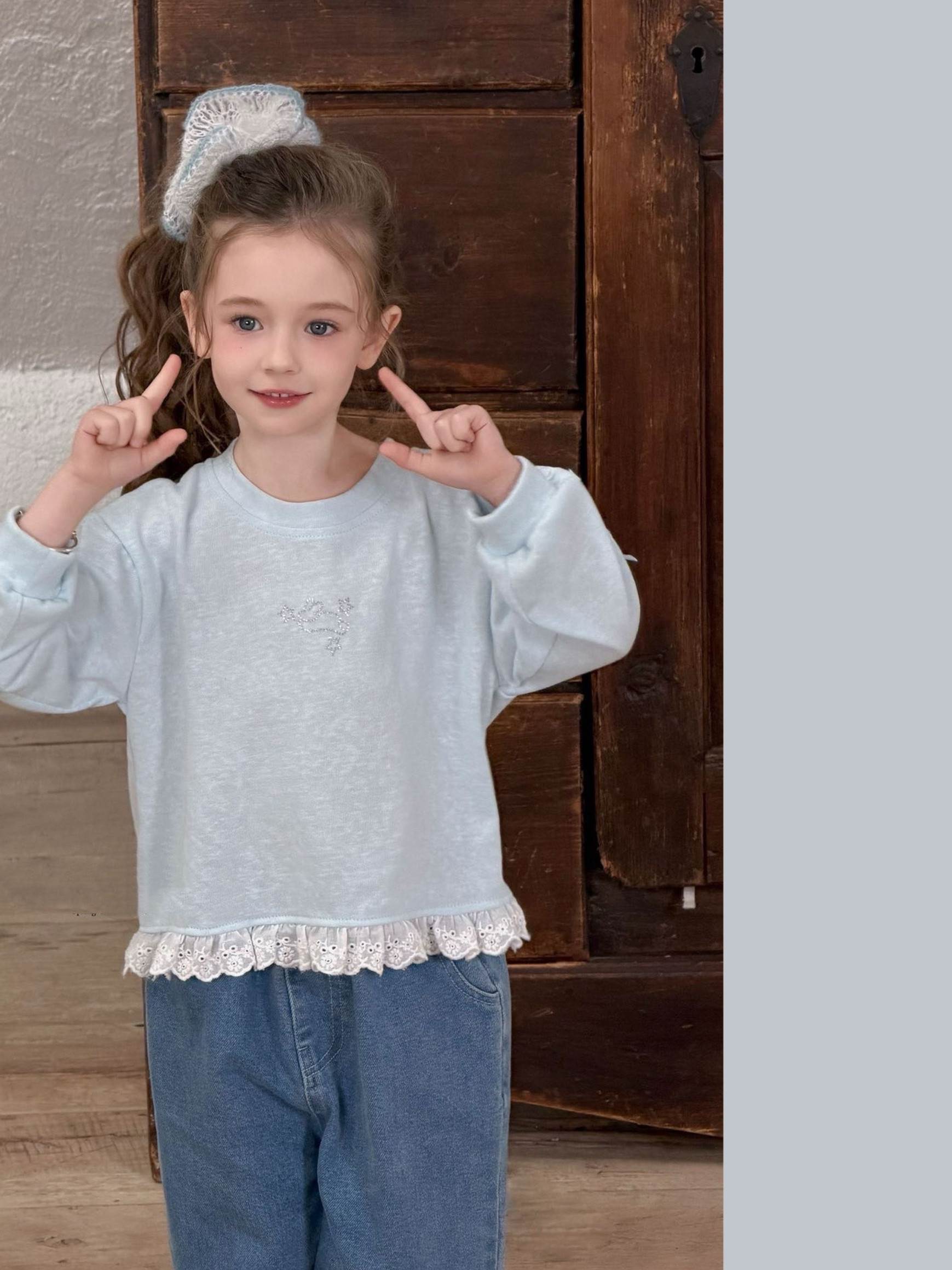 女童春款甜美上衣2026新款儿童宽松纯棉上卡通花边T恤女孩卫衣t恤