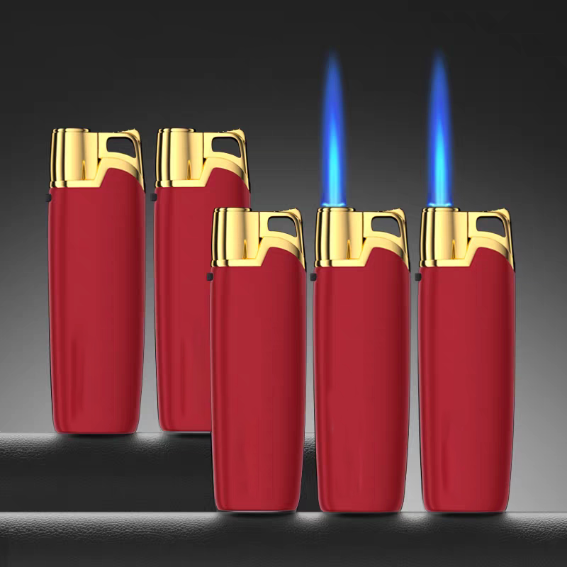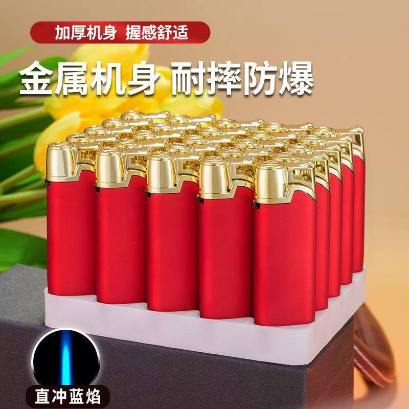 新款细长金属防风磨砂蓝焰直冲打火机订制定制订做印字广告酒店
