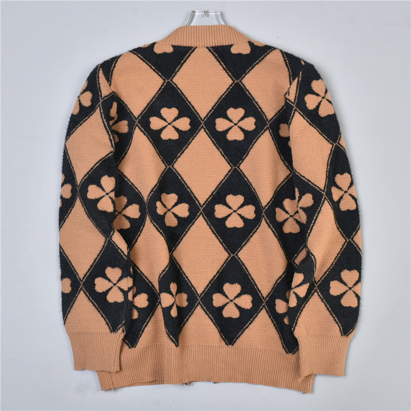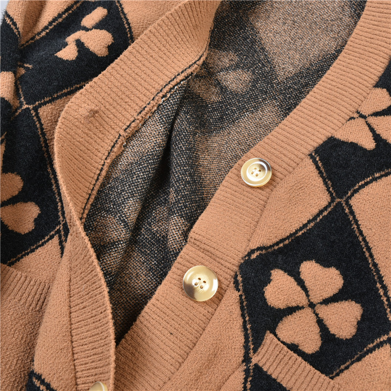 511宽松大码毛衣女针织开衫78520春秋显瘦洋气胖MM加厚格子短外套