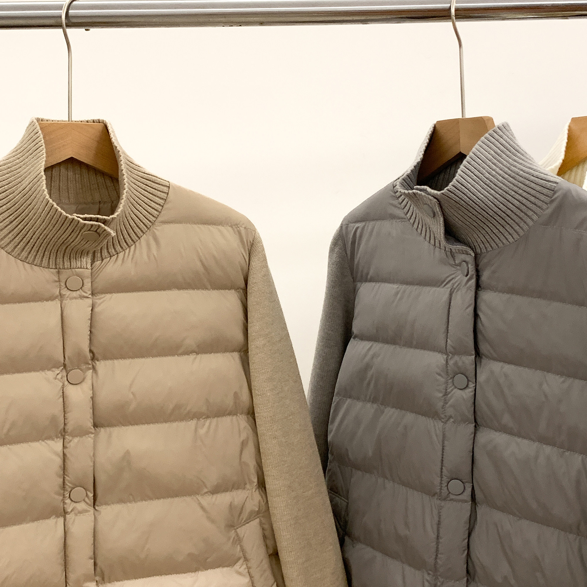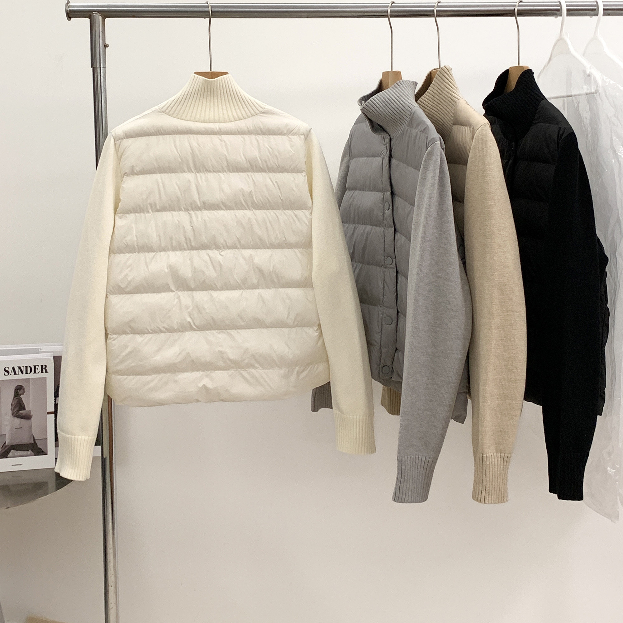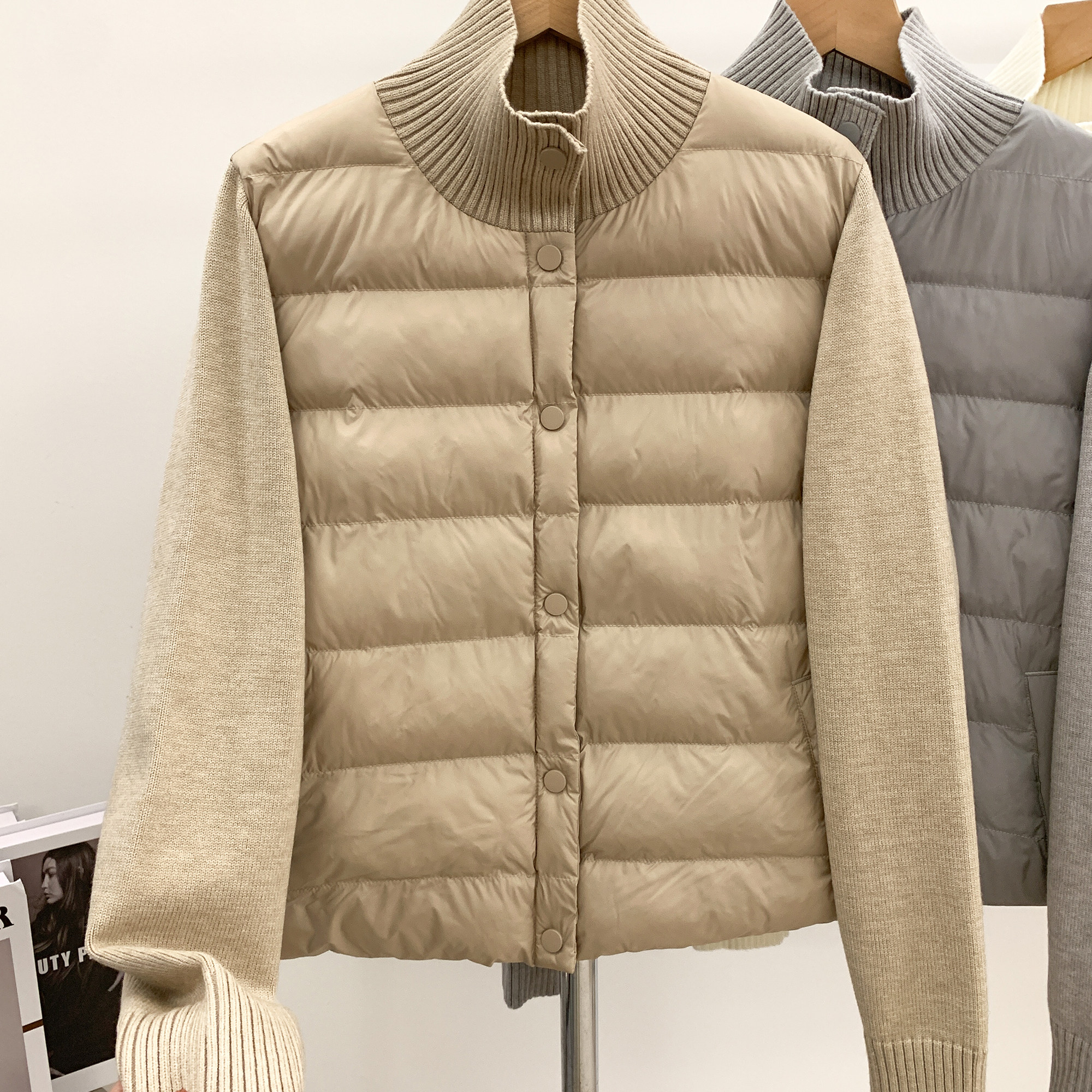 轻薄羽绒棉服女款2025冬季新款立领毛衣拼接轻便排骨内胆短外套潮