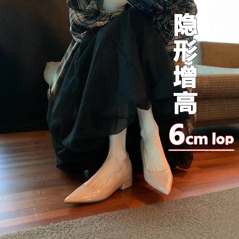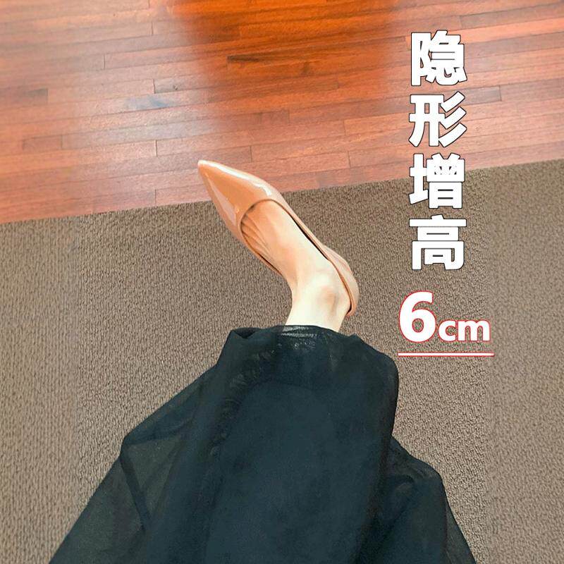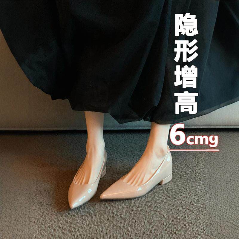 春秋法式裸色尖头粗跟单鞋女浅口鞋子内增高一脚蹬百搭通勤女鞋