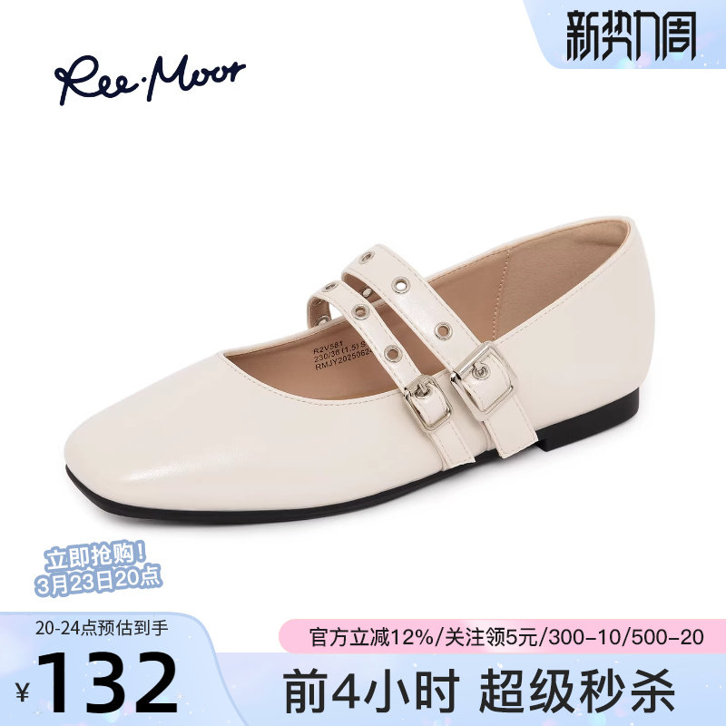 reemoor2026春夏新款法式复古方头铆钉玛丽珍鞋女平底单鞋女鞋