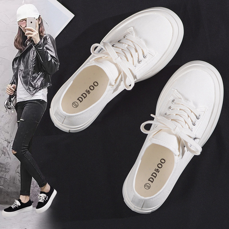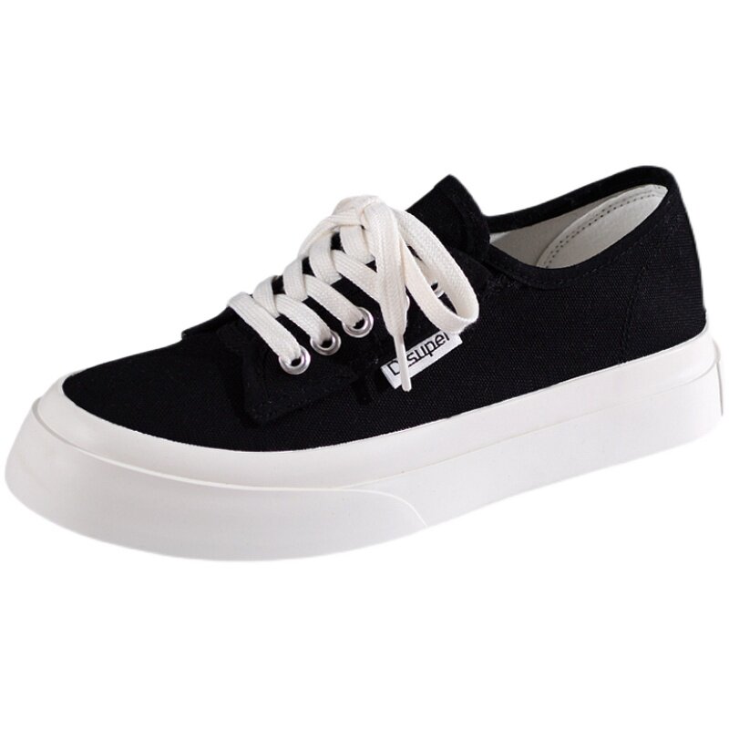 小众大头帆布鞋女2024夏季薄款网红方头百搭春秋潮鞋小白鞋小黑鞋