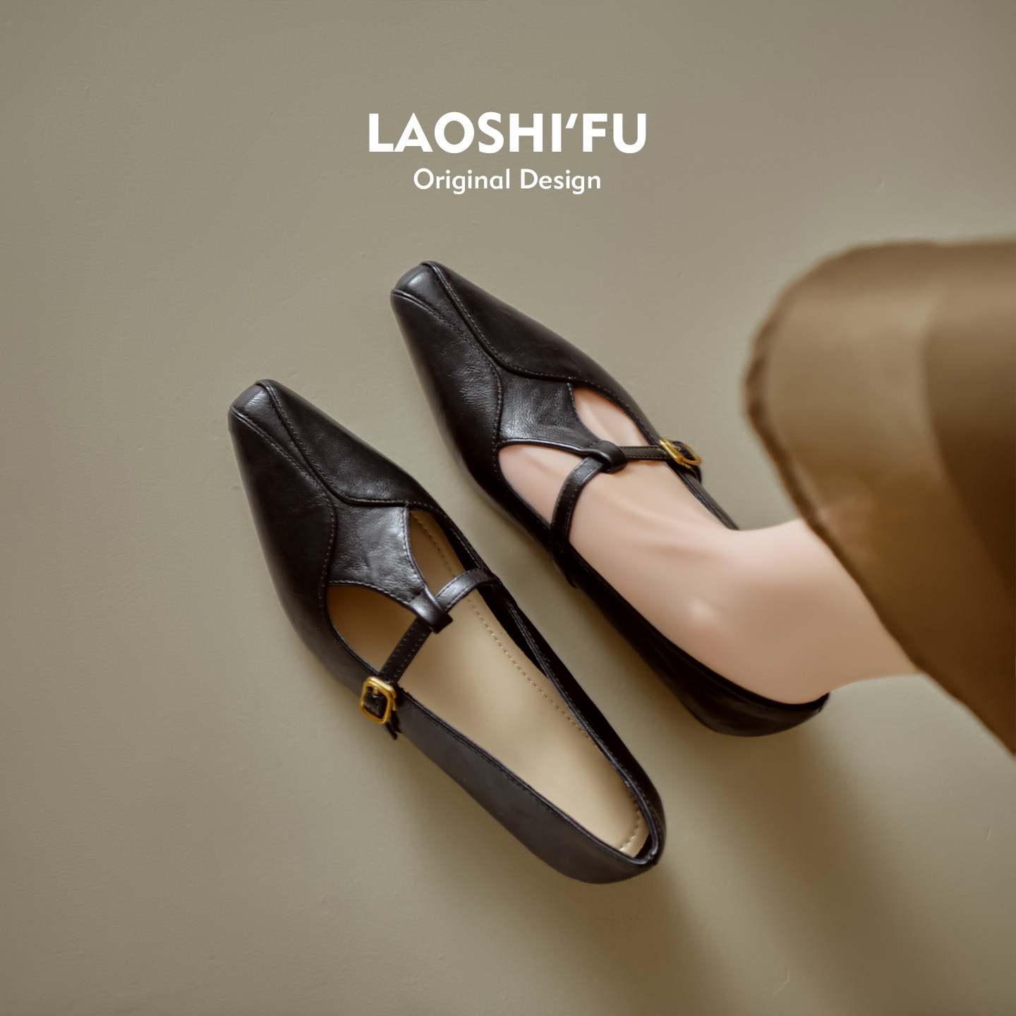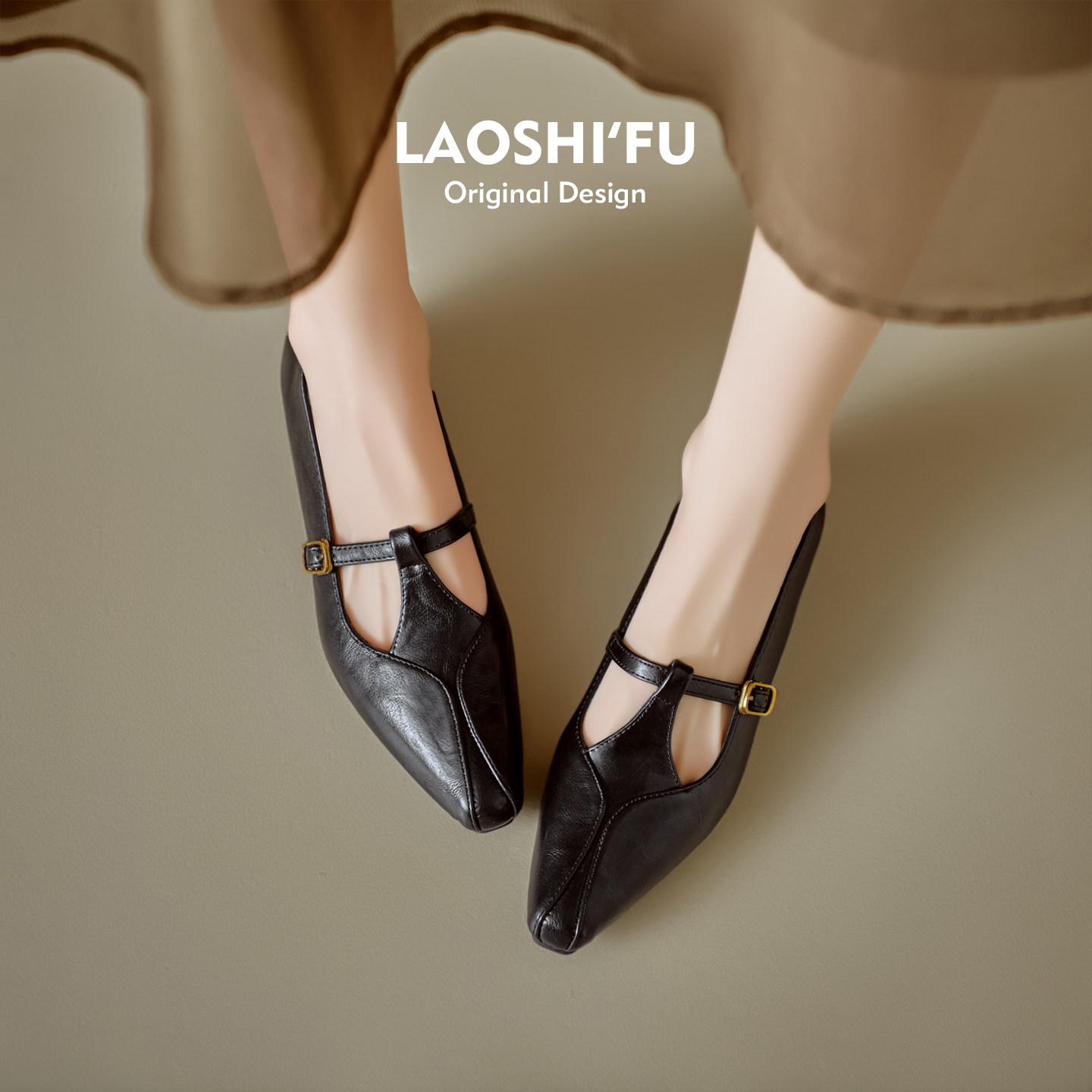 羊皮版~法式尖头内增高浅口单鞋女2026新款平底一字扣带玛丽珍鞋