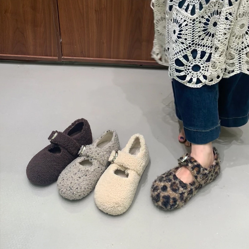 森系复古加厚加绒内增高玛丽珍鞋女2026秋冬厚底毛毛鞋豆豆鞋棉鞋