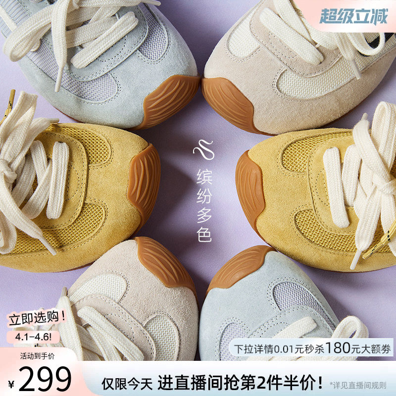 百思图夏新款网面透气歪头德训鞋内增高女运动休闲鞋D3072BM5