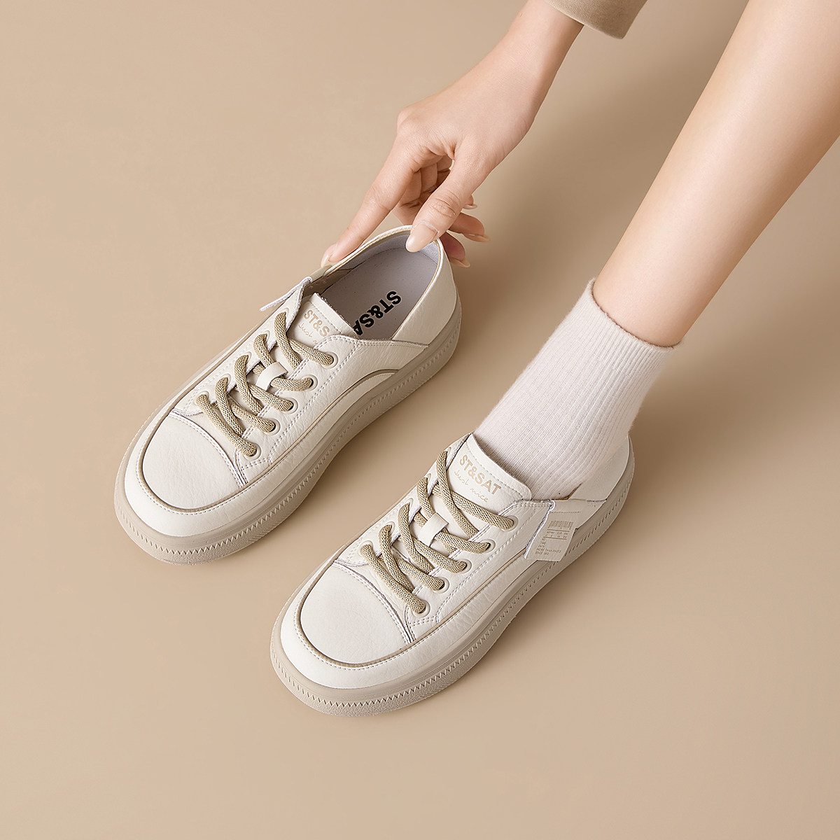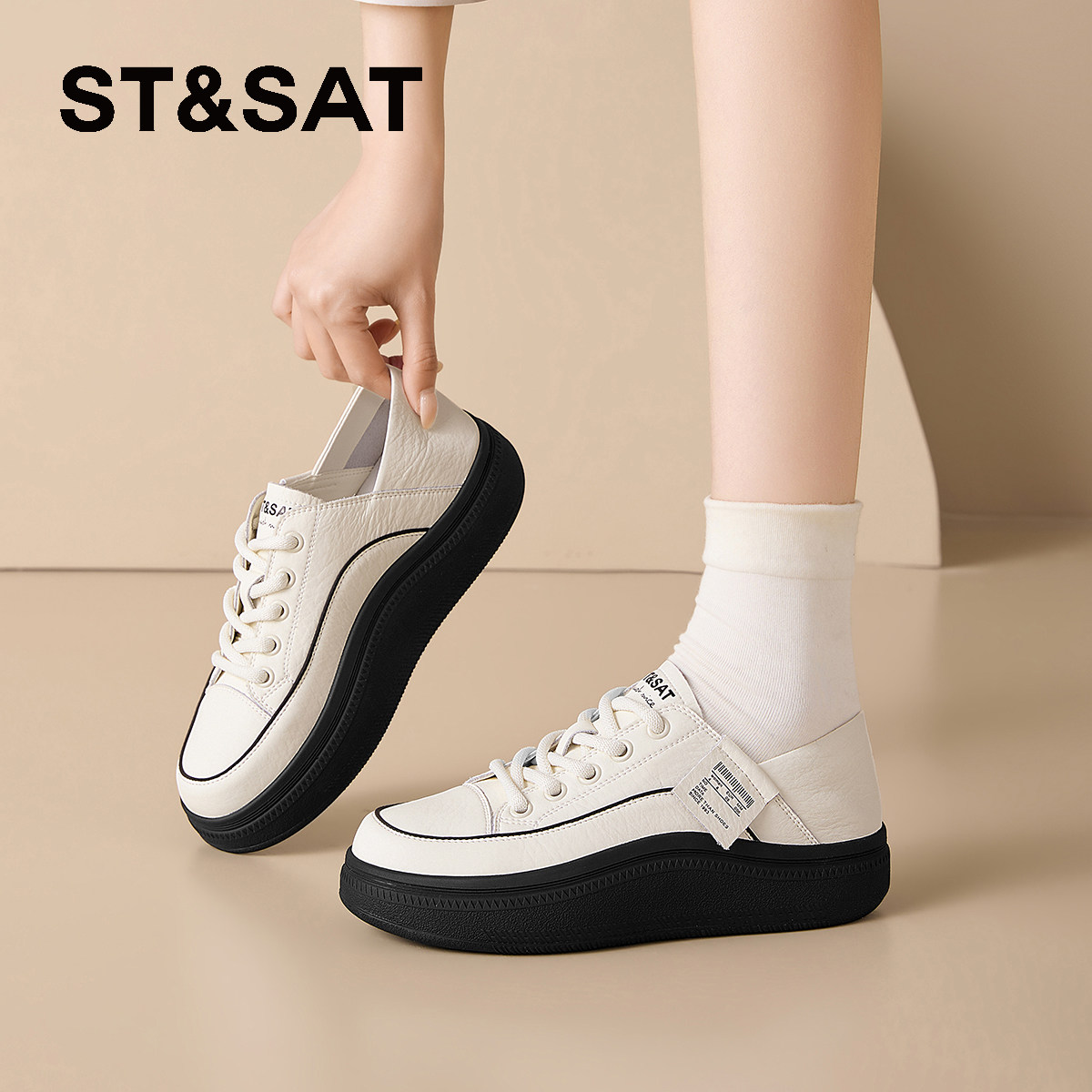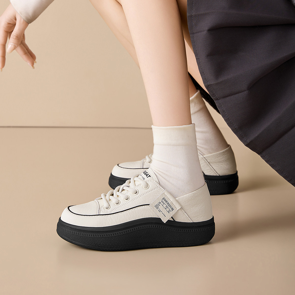 星期六厚底增高皮面小白鞋子女鞋春夏季2026新款百搭运动休闲板鞋