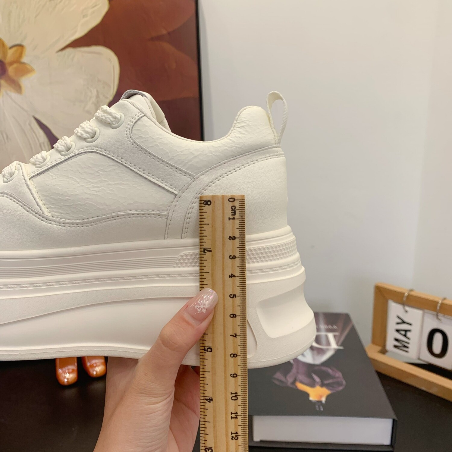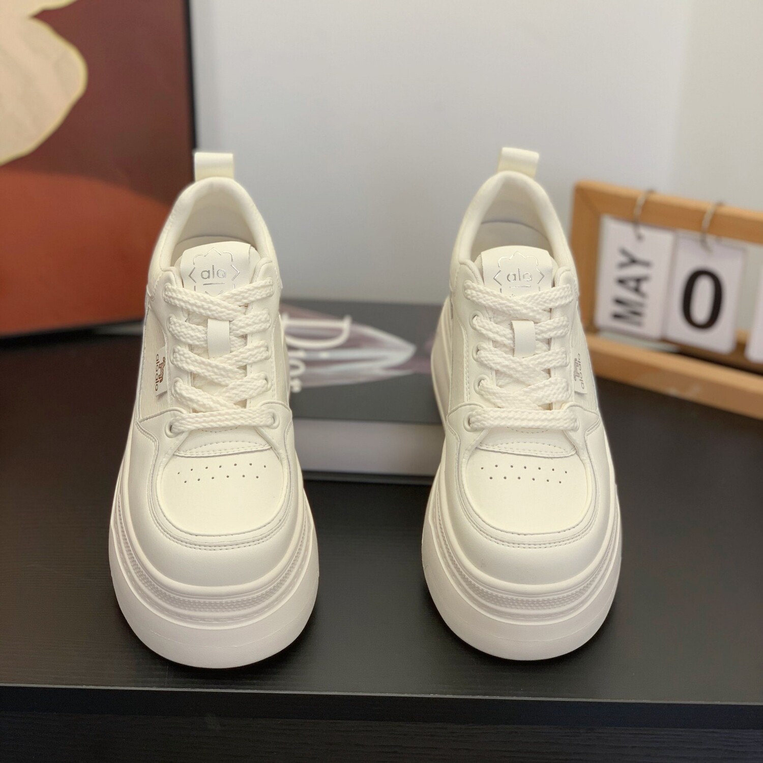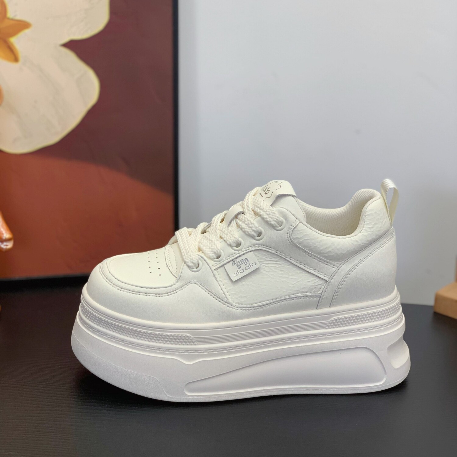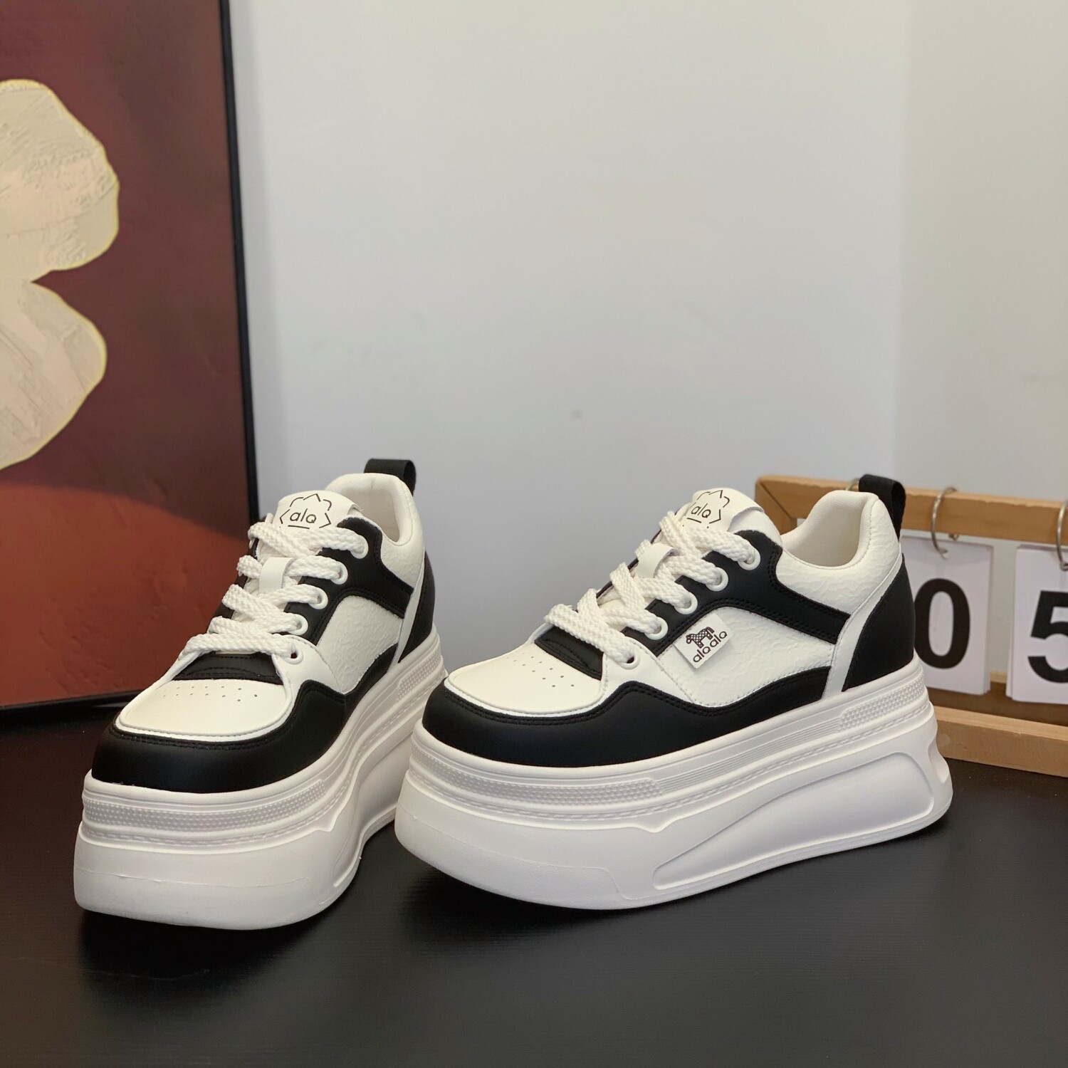8cm小个子厚底真皮熊猫板鞋女2026春季新款内增高休闲松糕小白鞋