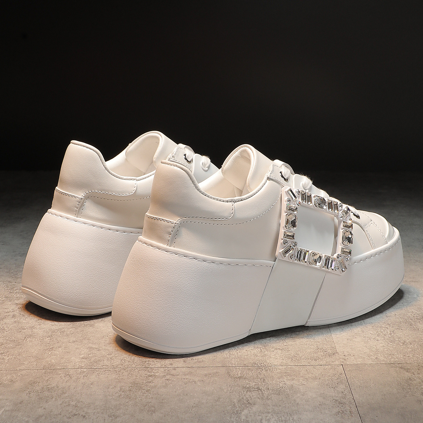 baby同款水钻方扣小白鞋女鞋真皮厚底鞋内增高8cm小个子休闲板鞋