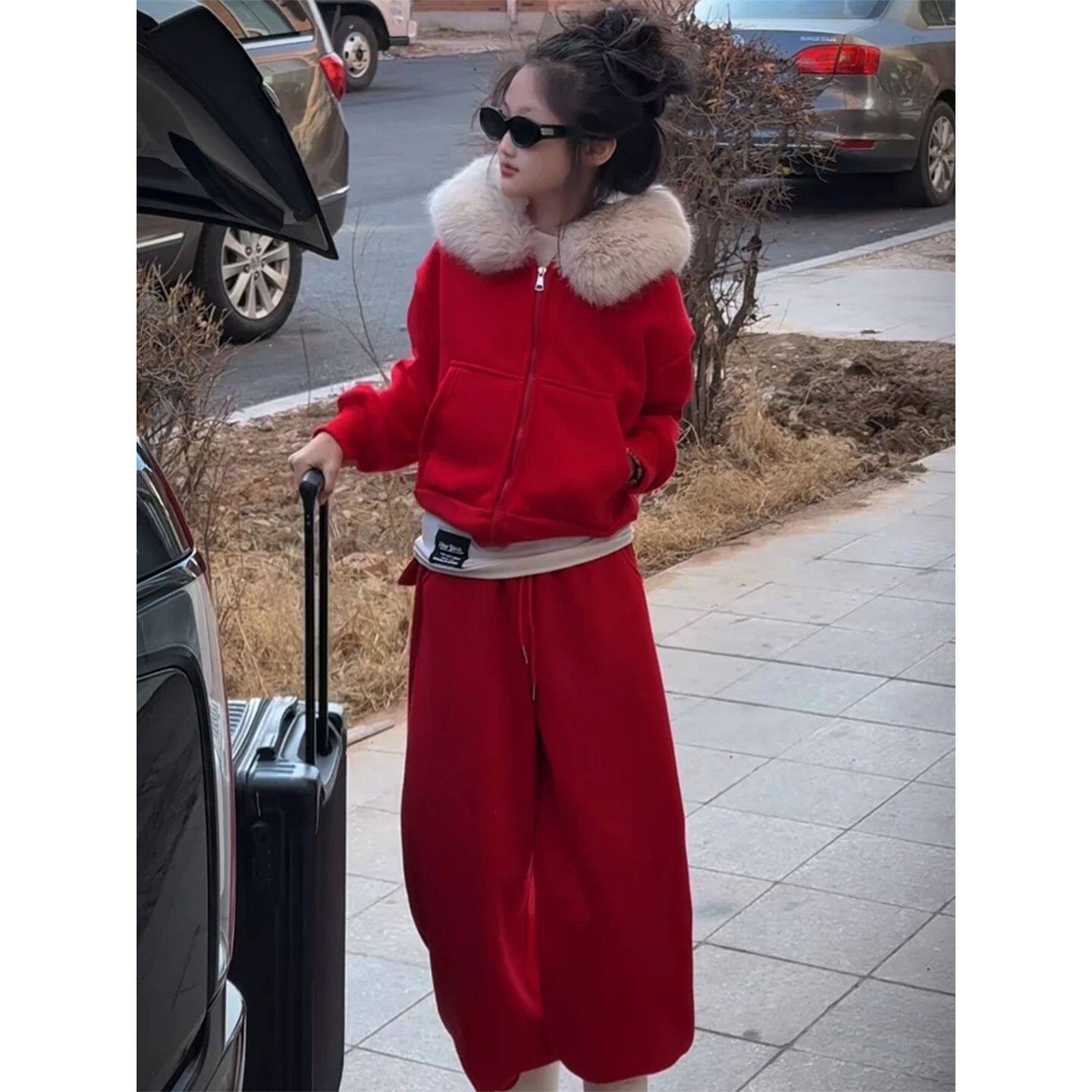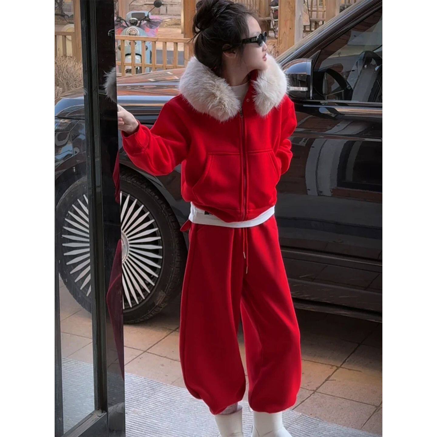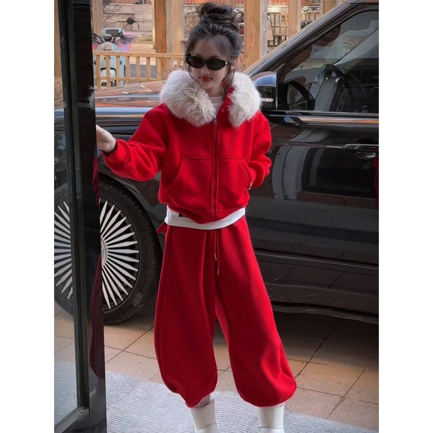 女童套装冬装2026新款儿童洋气加绒加厚年服女大童冬季红色两件套