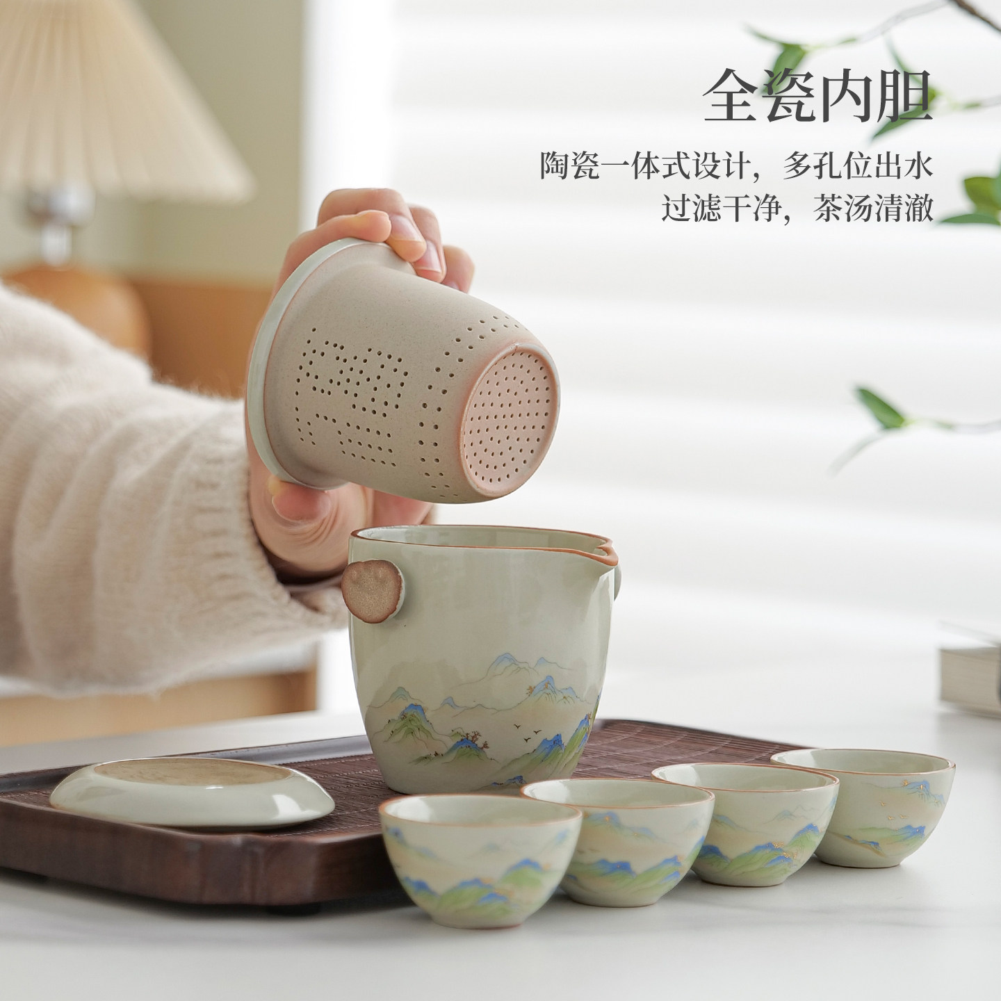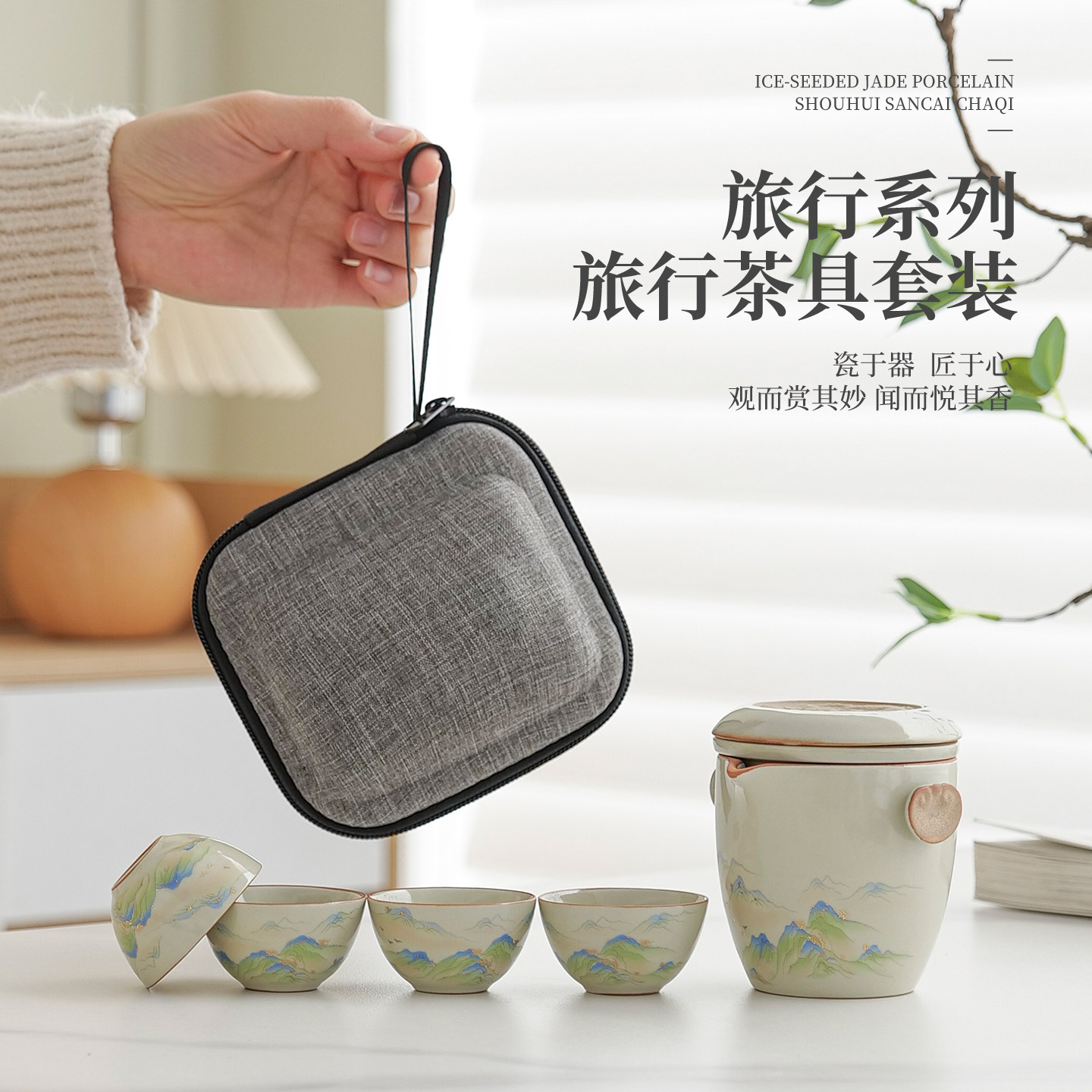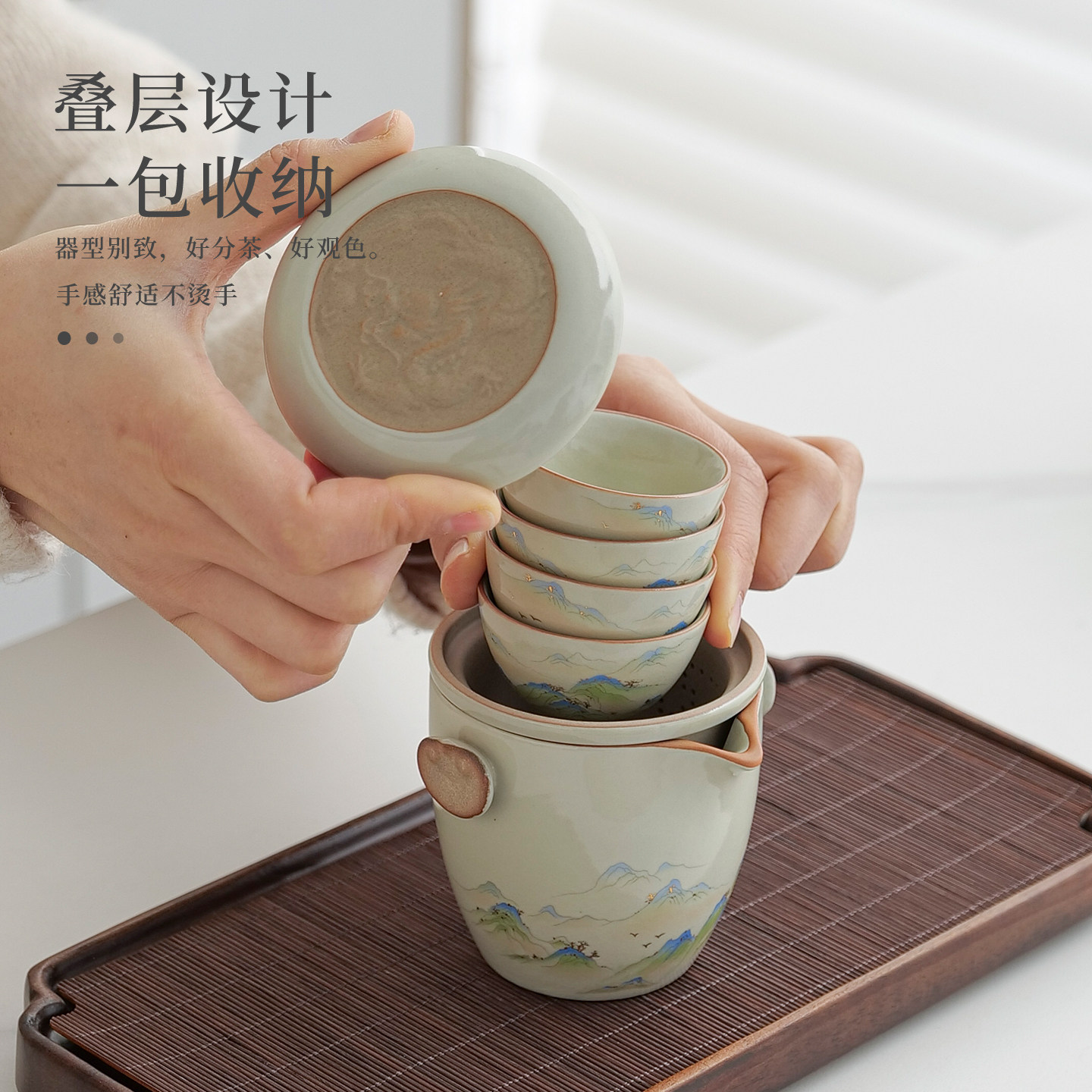 311线报网描述:便携快客杯汝窑功夫茶具套装