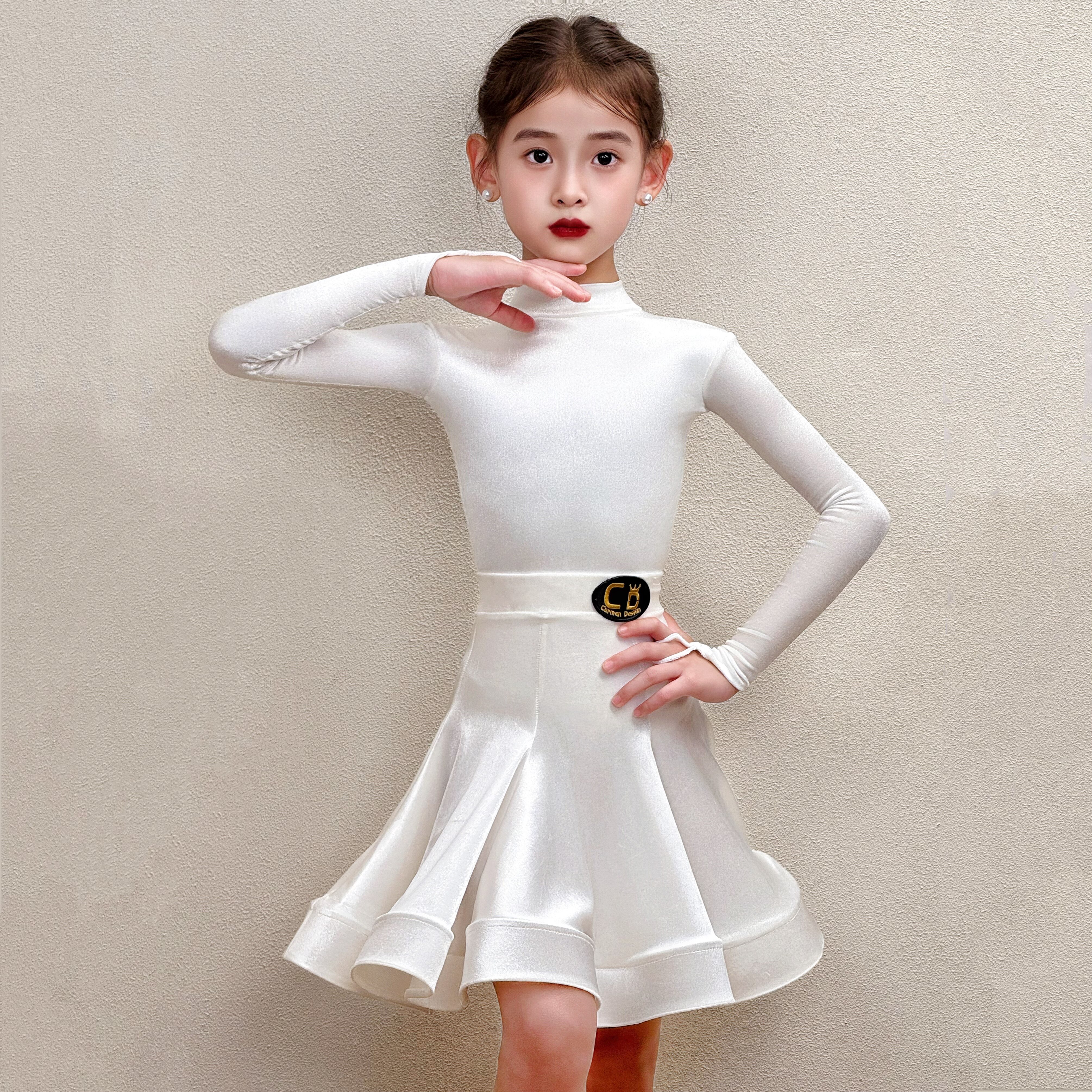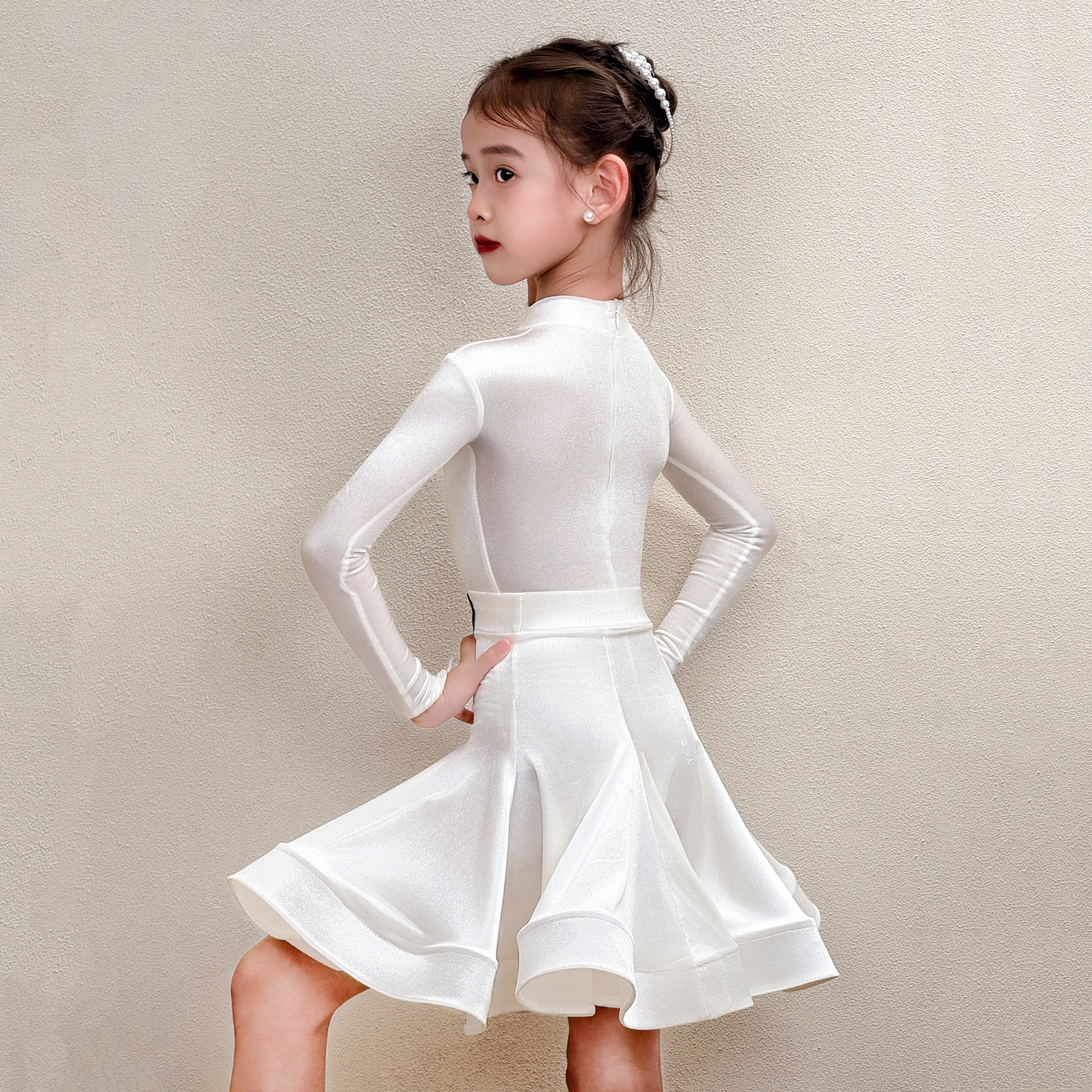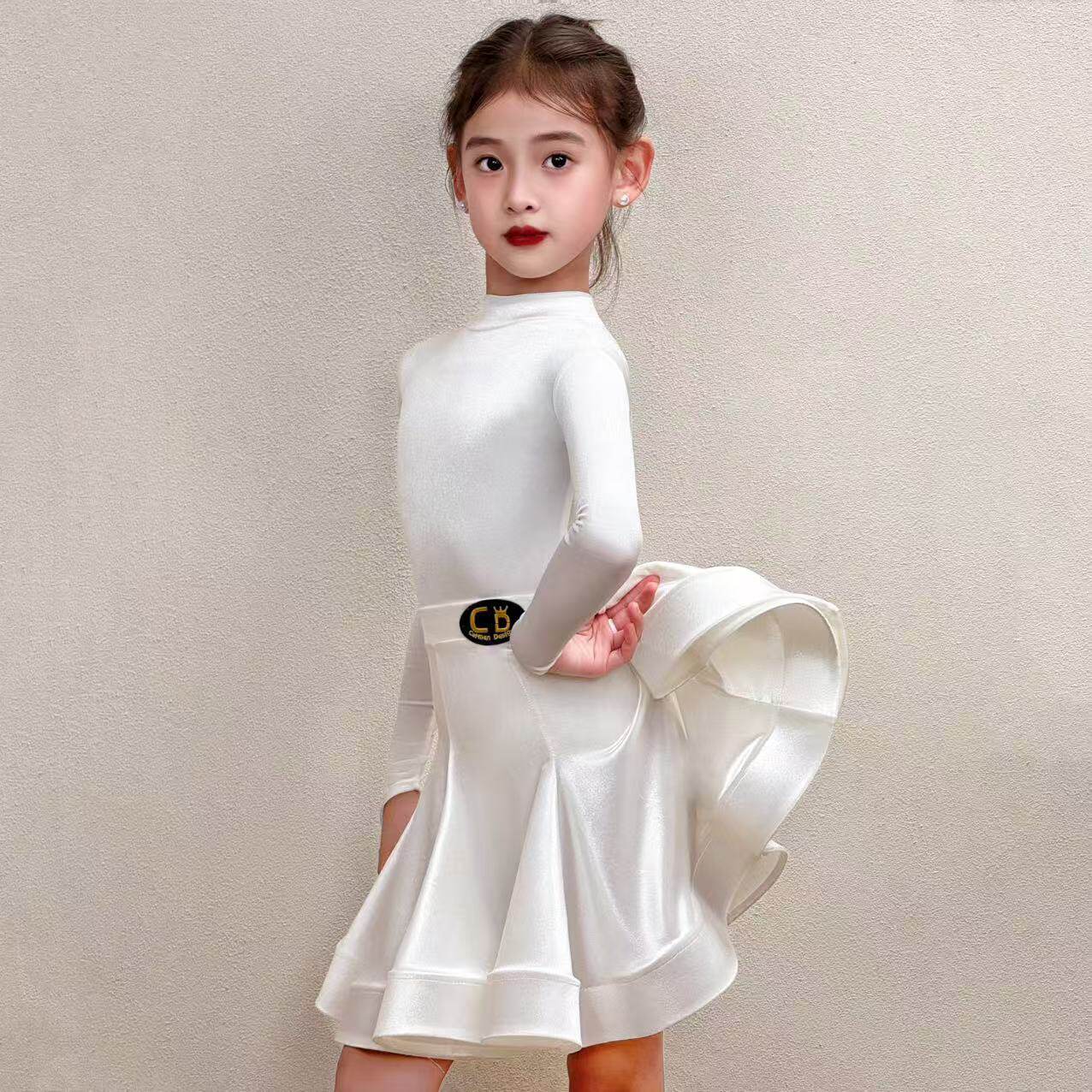 CD卡门亮面丝绒白长袖拉丁舞服女童少儿考级专业比赛标准规定服