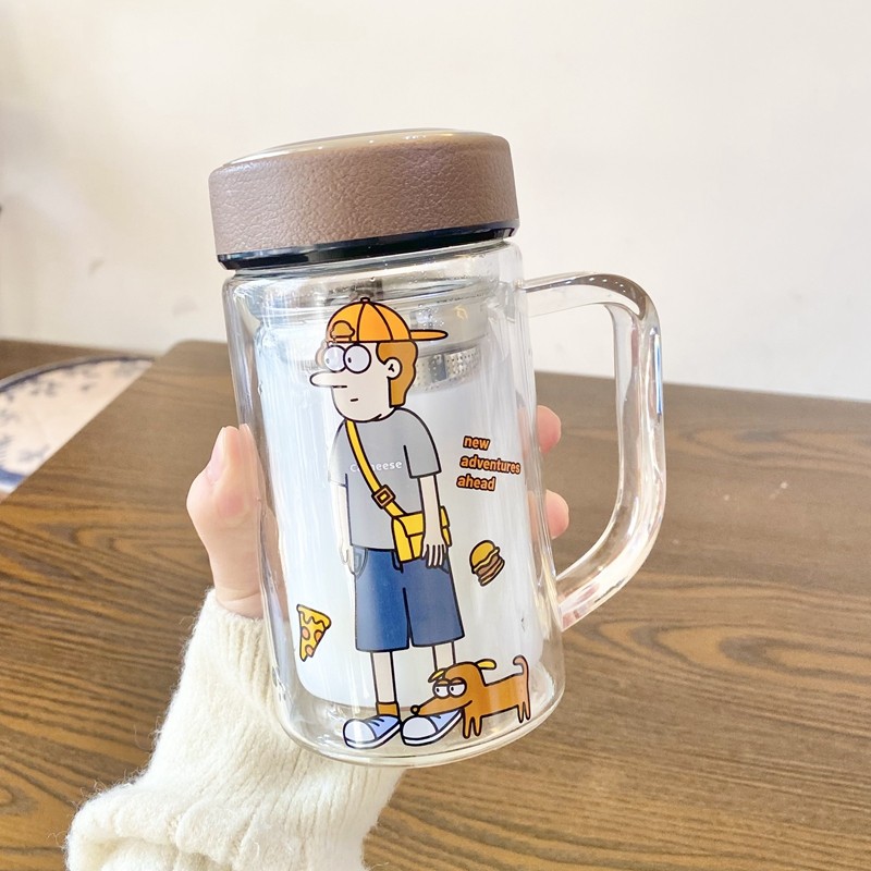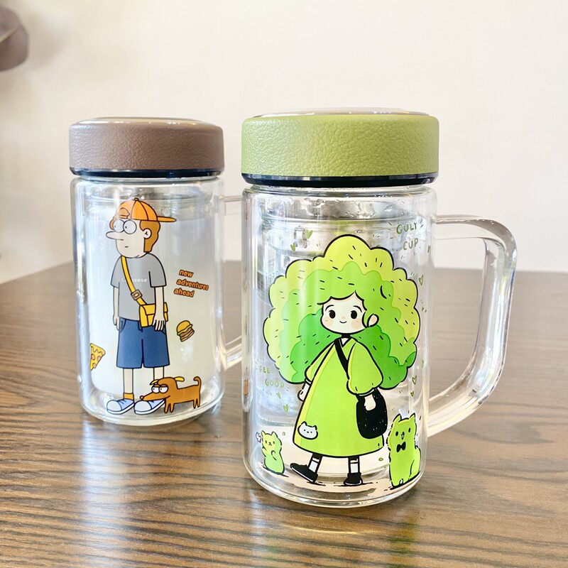 2025新款双层玻璃水杯男士带手柄大容量高颜值泡茶杯子女生便携式