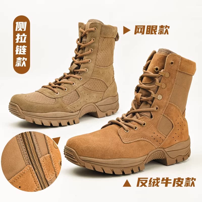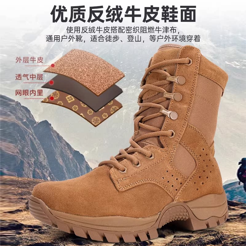 棕色作战靴男夏季碳板超轻透气高帮登山靴户外牛皮防水防刺训练靴