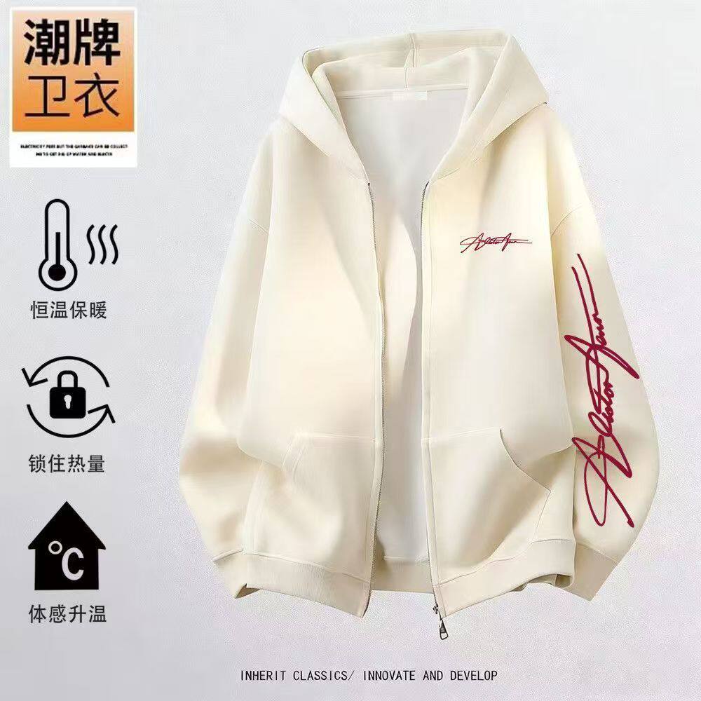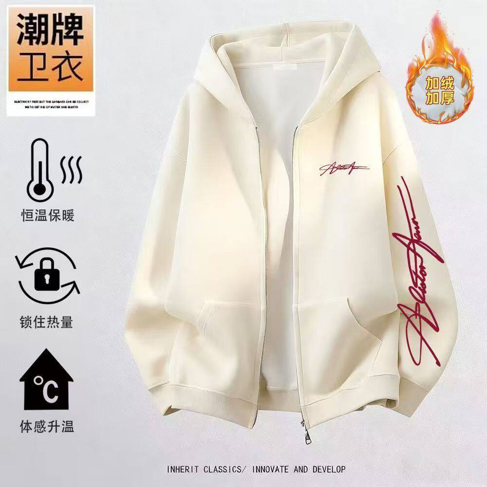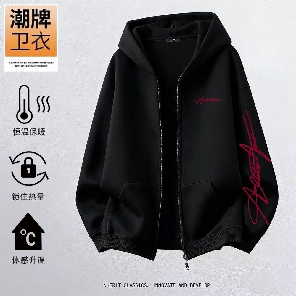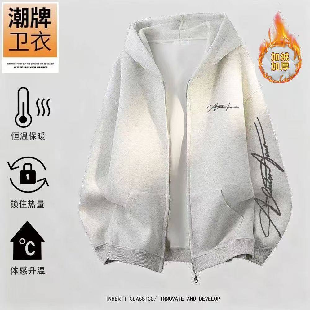 男女童美式复古字母印花拉链外套中大童休闲学院风加绒开衫卫衣潮