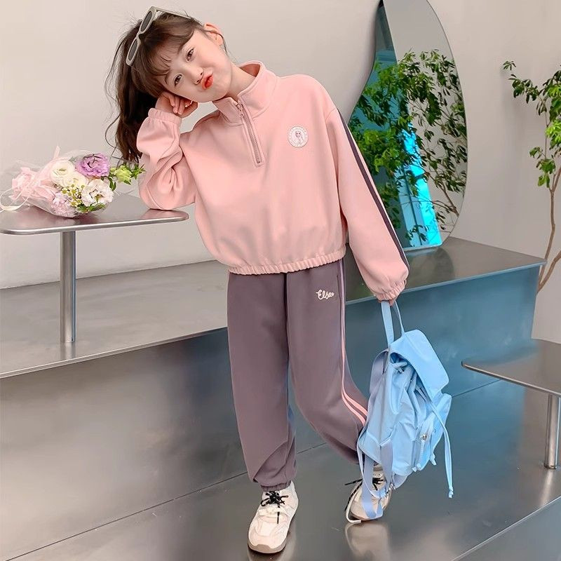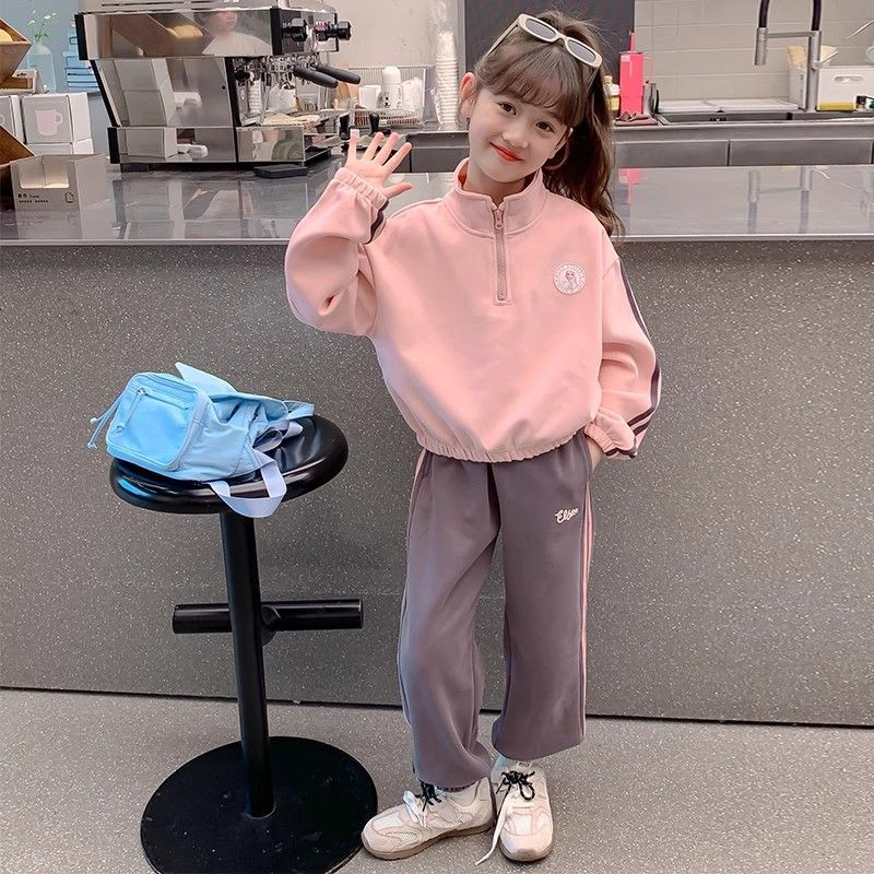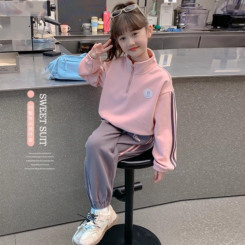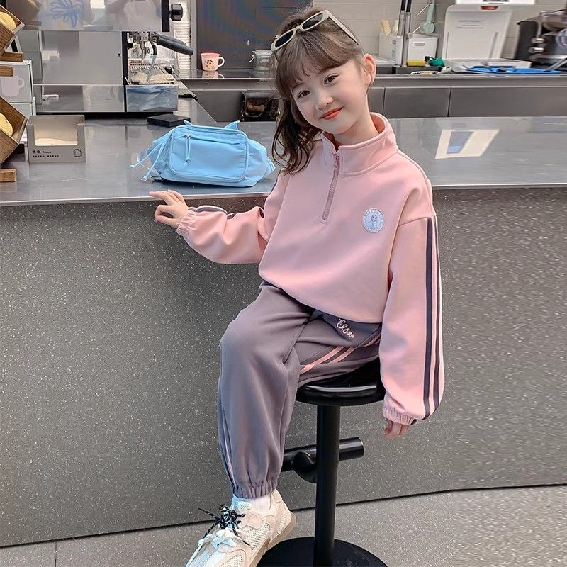 女童加绒套装卫衣运动女孩2026新款洋气儿童休闲半高领秋冬两件套