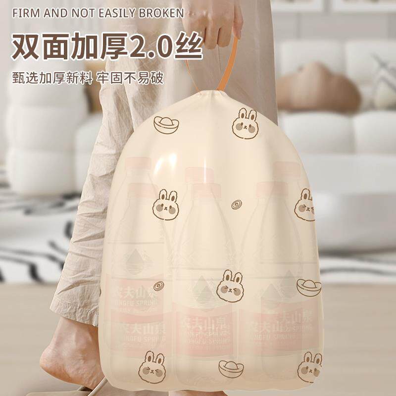 免撕抽绳印花垃圾袋家用手提式加厚厨房抽绳特厚超大号清洁塑料袋