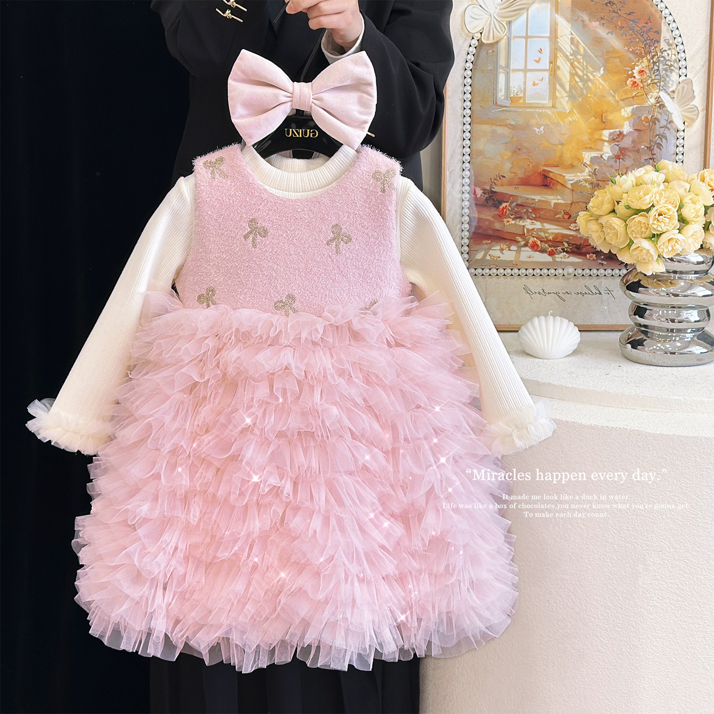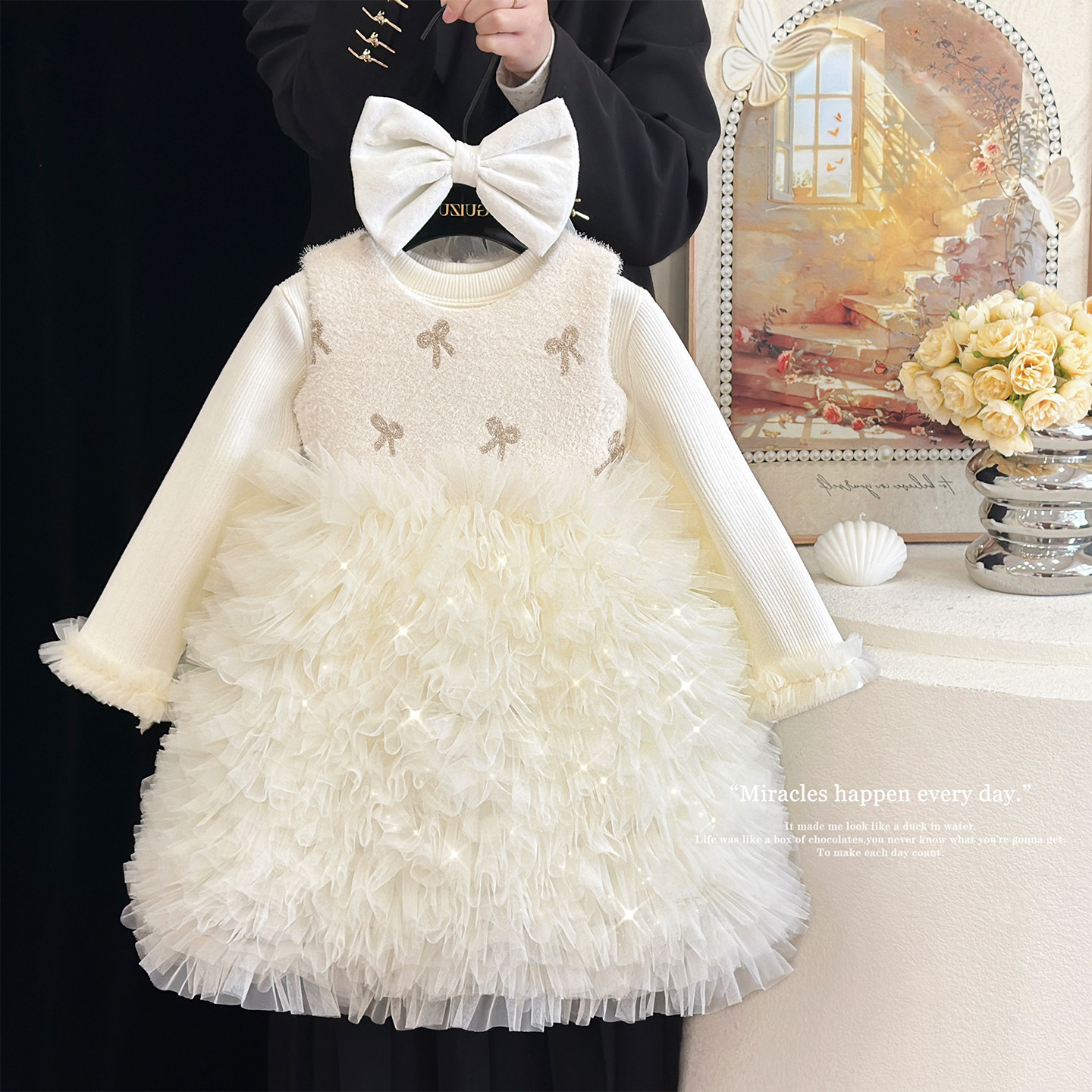 女童加绒连衣裙冬装儿童生日公主裙洋气蓬蓬纱裙高级感小香风礼服