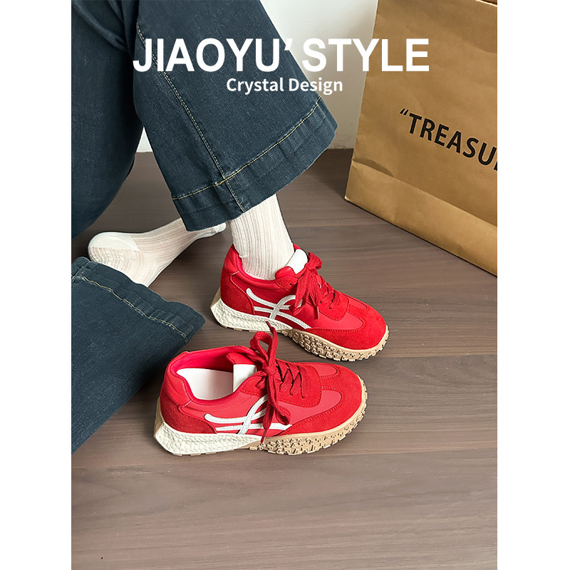 真皮~骄屿7cm内增高德训鞋2026春新款厚底运动休闲板鞋复古小白鞋