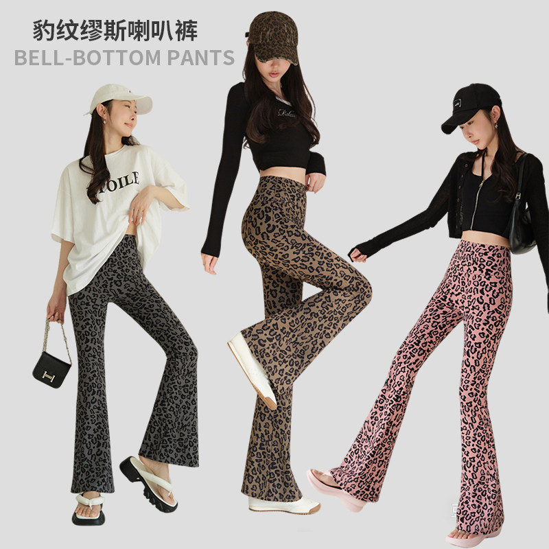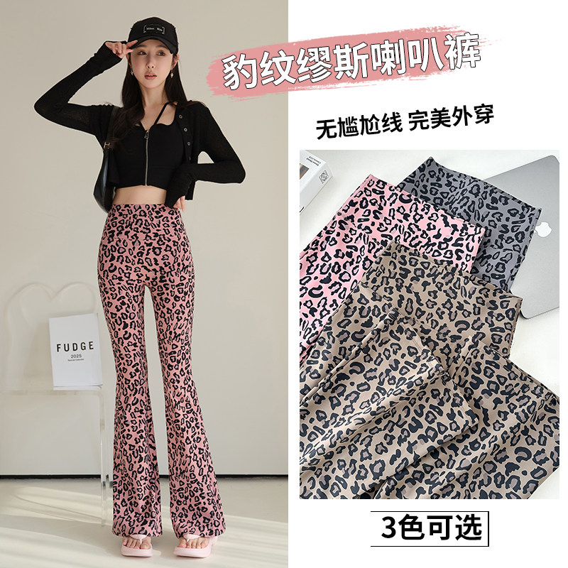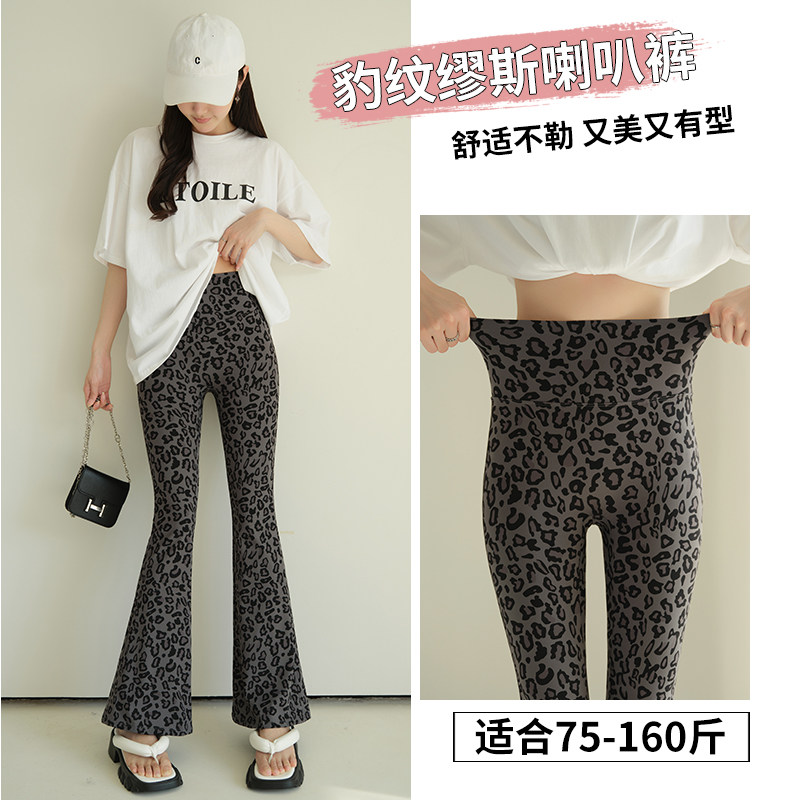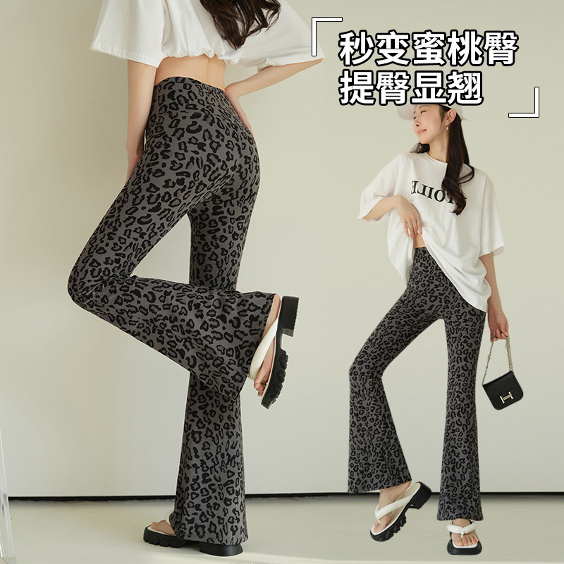 无尬线豹纹微喇裤女外穿春夏薄款高腰收腹提臀瑜伽遮肉拉腿喇叭裤