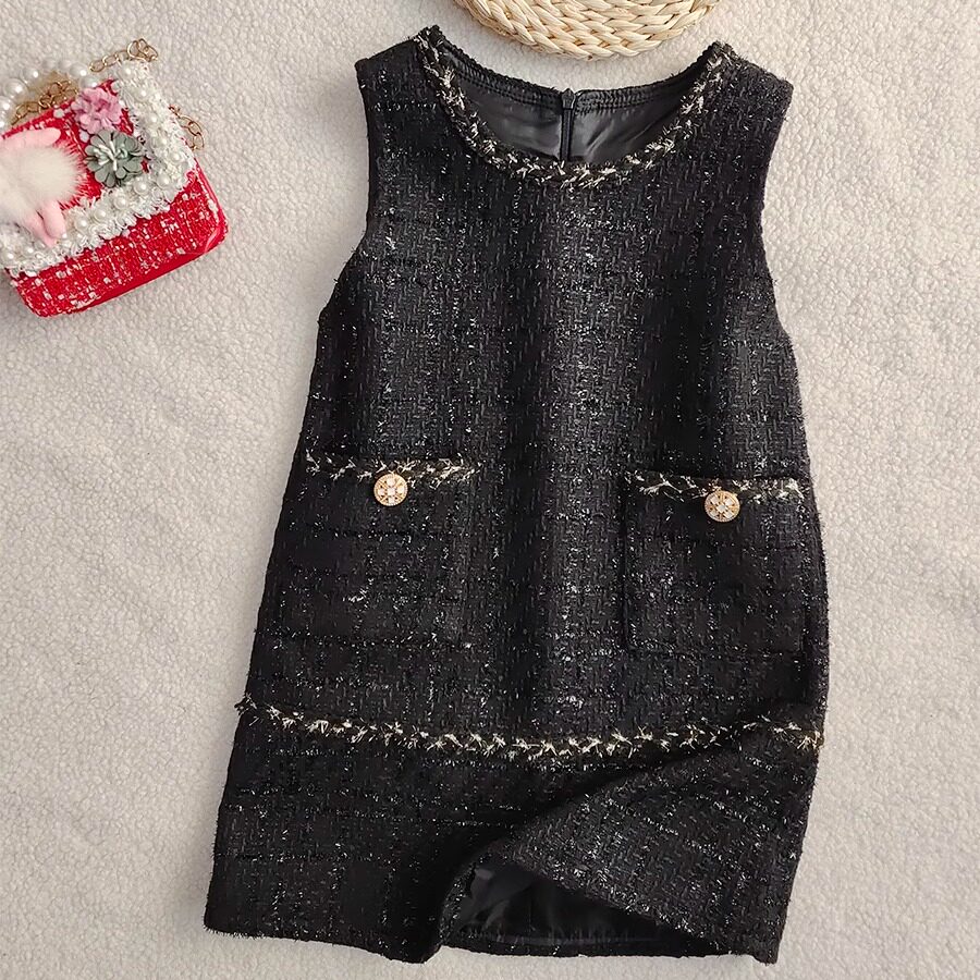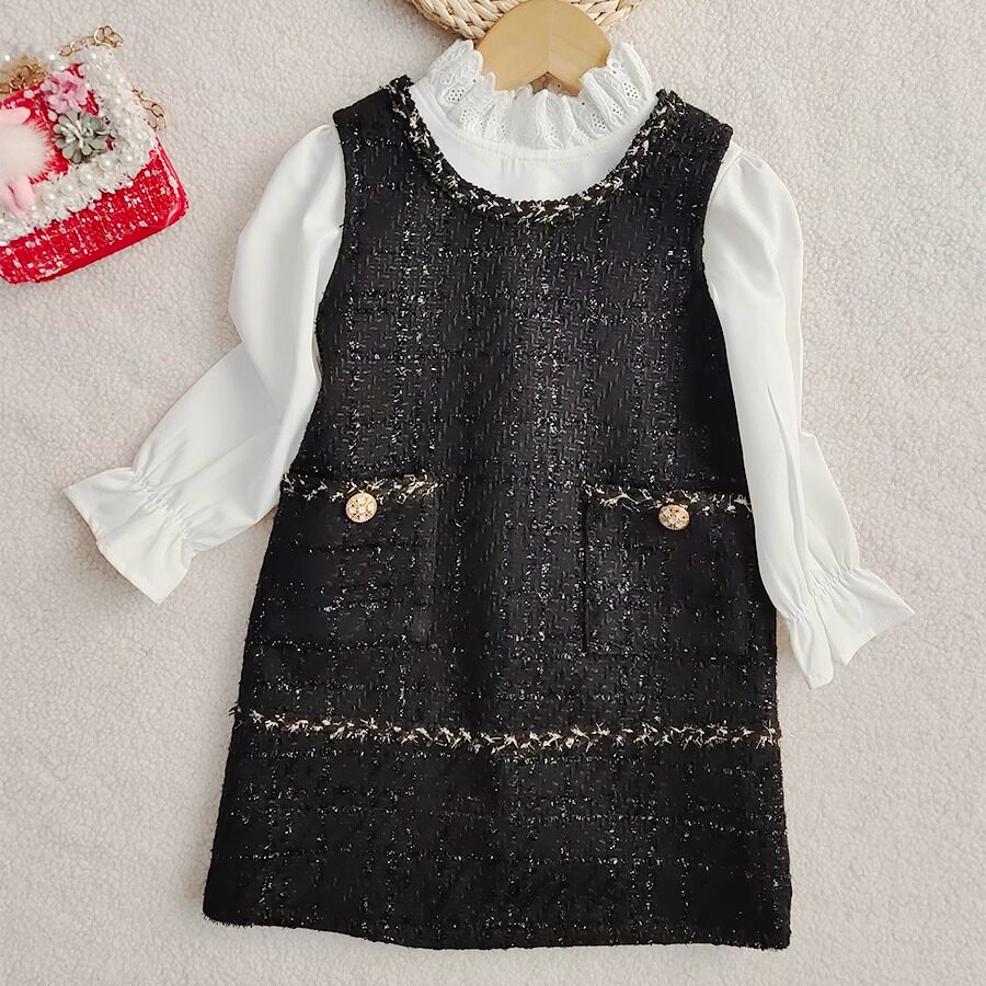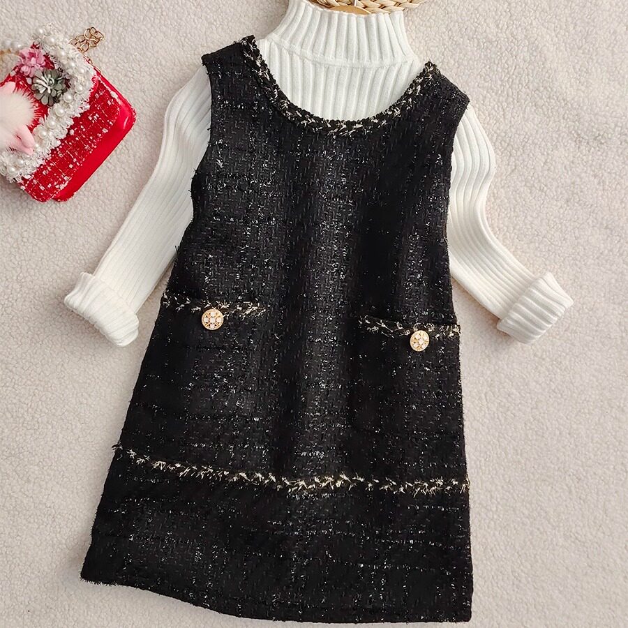 女童马甲裙秋冬新款洋气连衣裙春秋小香风背心裙中大童公主裙加厚
