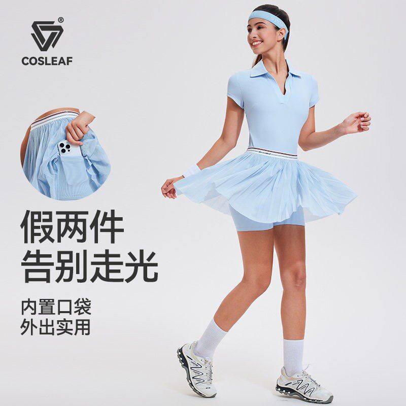 科里芙跑步运动套装女夏新款高颜值速干衣t恤羽毛球服网球半身裙