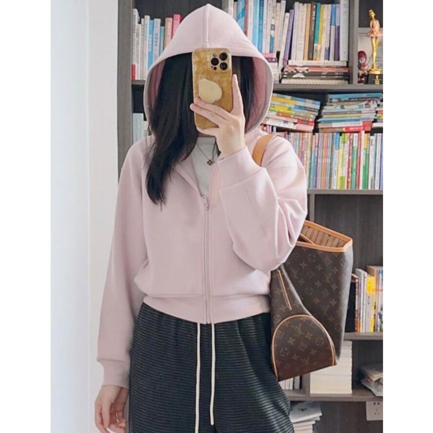 粉色短款重磅卫衣女秋冬季2026新款拉链开衫加绒加厚连帽宽松外套