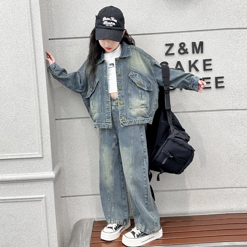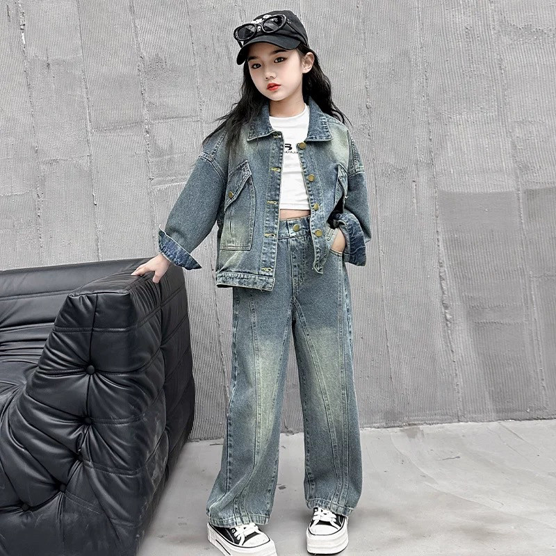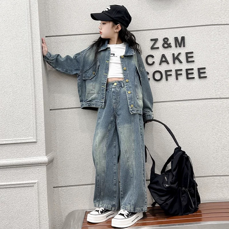 女童牛仔套装春秋2026新款洋气儿童时髦春装外套阔腿裤两件套童装