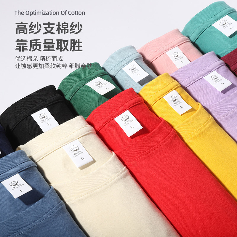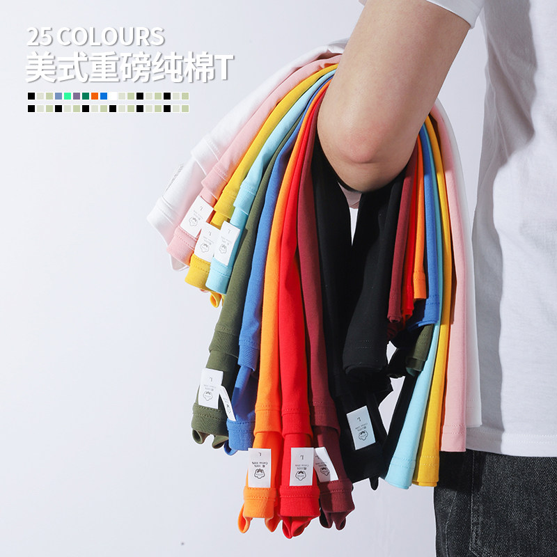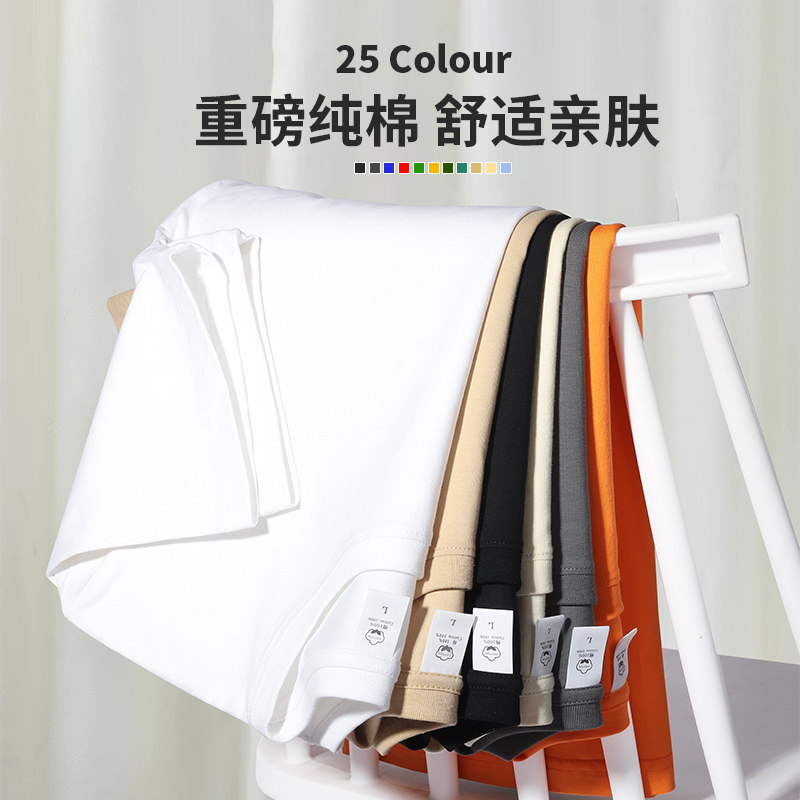 纯棉重磅t恤工作服定制印logo夏季圆领短袖团建班服文化衫男刺绣