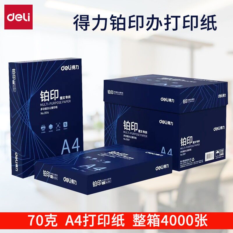 得力A4复印纸整件木尚塞纳河铂印尼罗河a4纸70g打印复印纸莱茵河