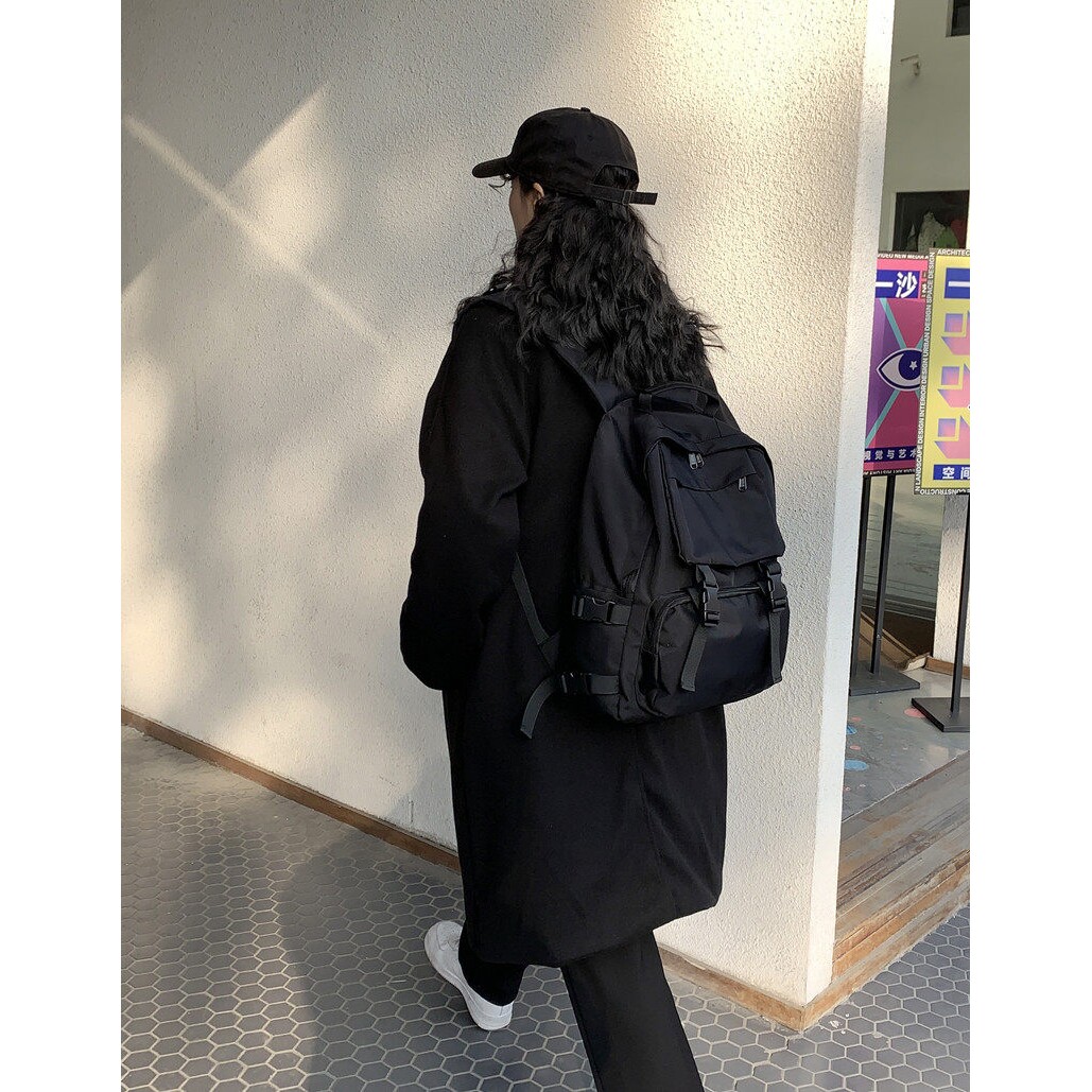 法国DEKCLK户外纯黑色双肩背包大容量牛津布旅行大学生原宿书包女