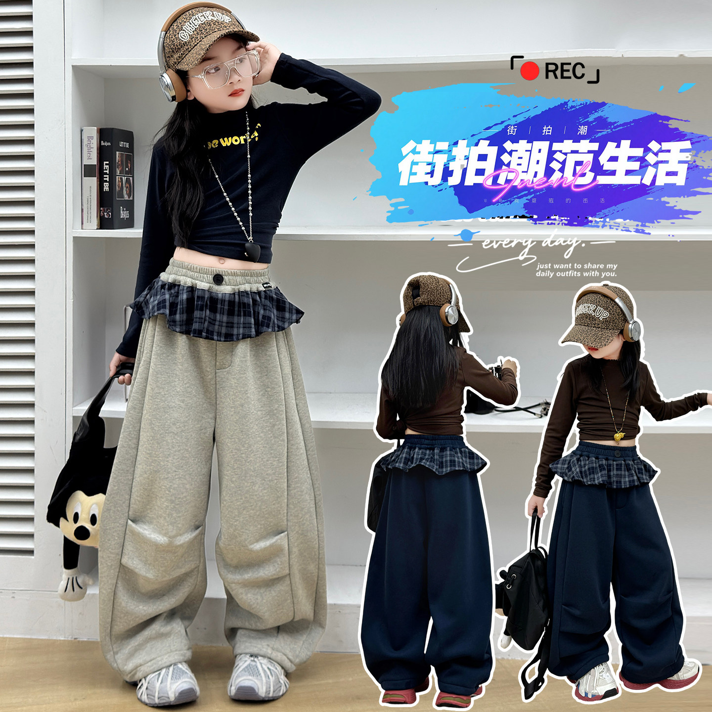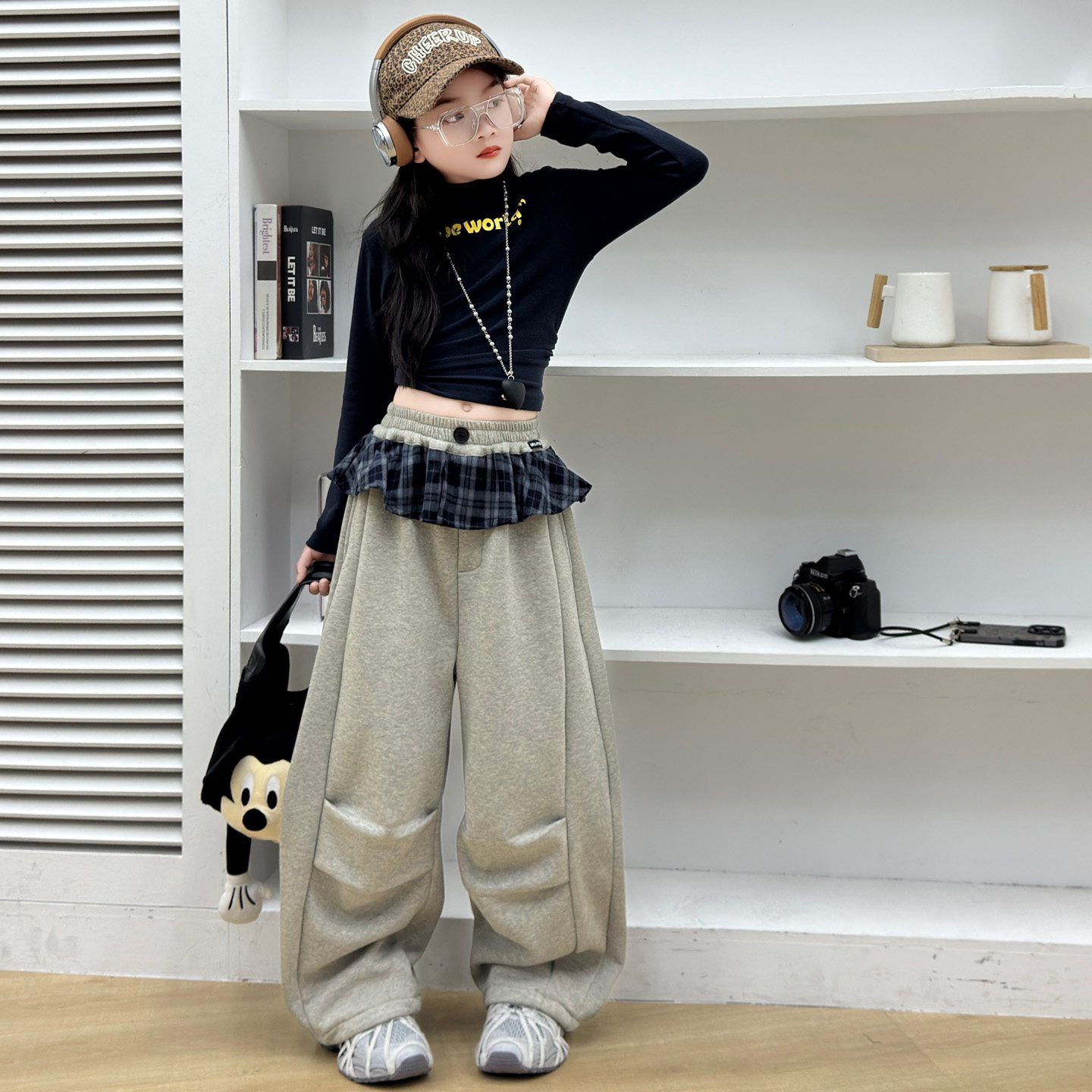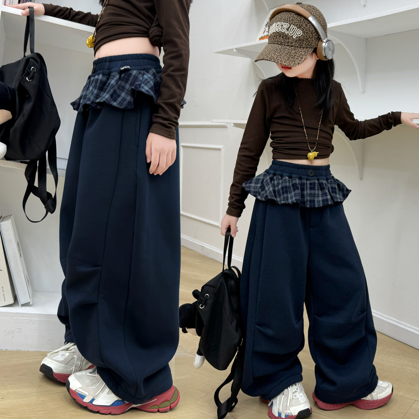 女童加绒打底衫2025款女孩秋冬超好看薄绒裤子大童时尚加厚阔腿裤