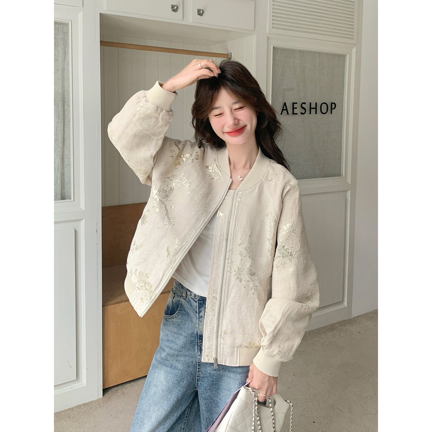 新中式国风提花棒球服外套女春秋2026新款精致肌理感绝美设计上衣