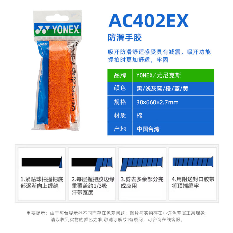 YONEX/尤尼克斯毛巾手胶AC402 羽毛球拍毛巾胶网球拍防滑吸汗带yy