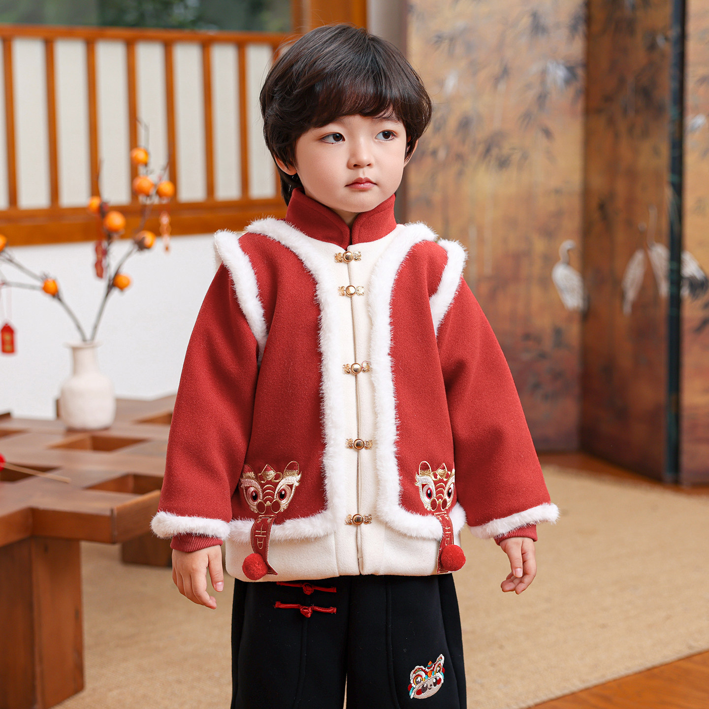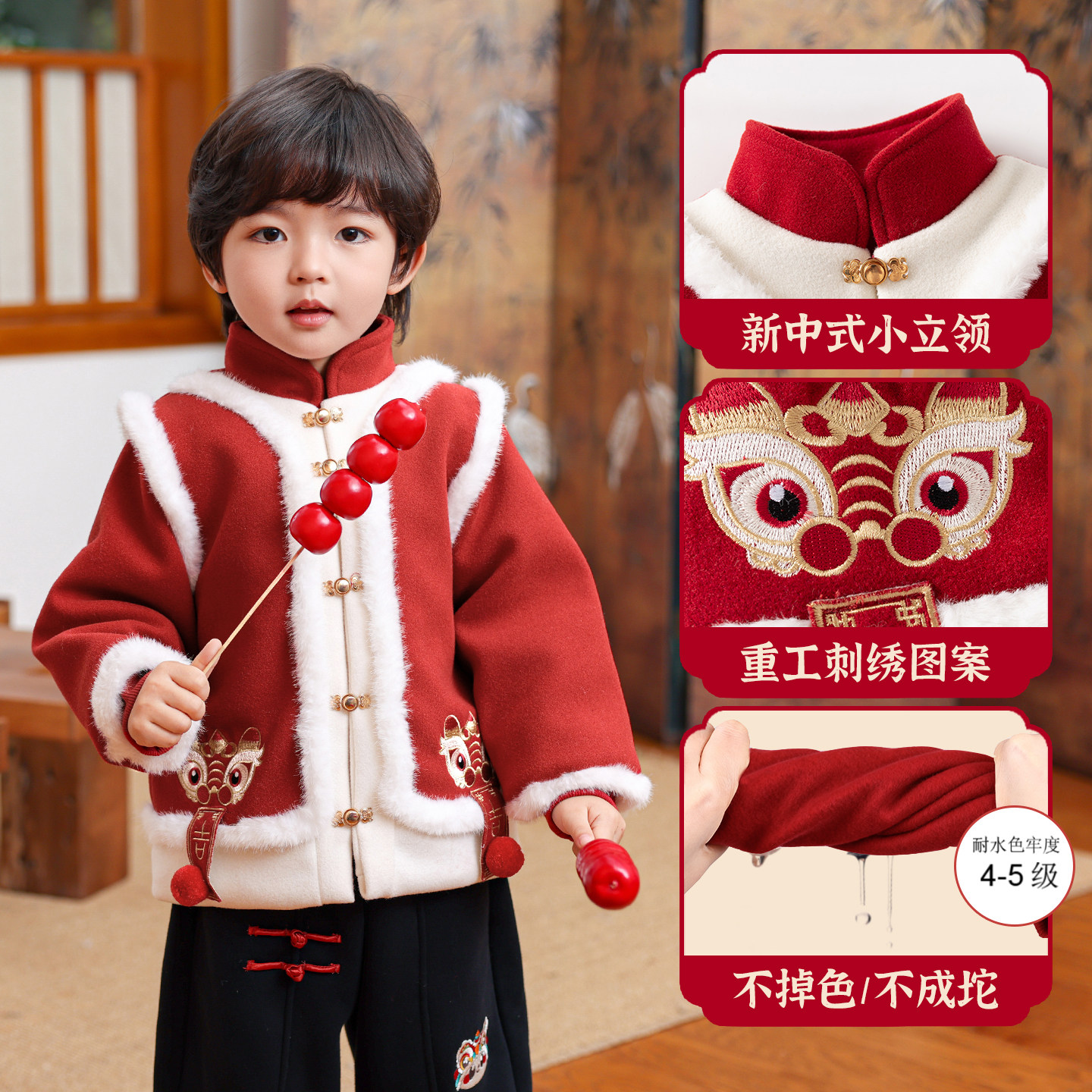 儿童拜年服红色男童喜庆过年衣服红色冬装2026冬新款男孩加厚外套