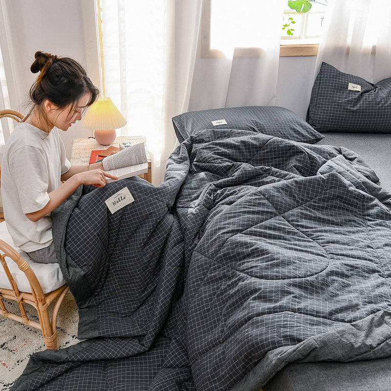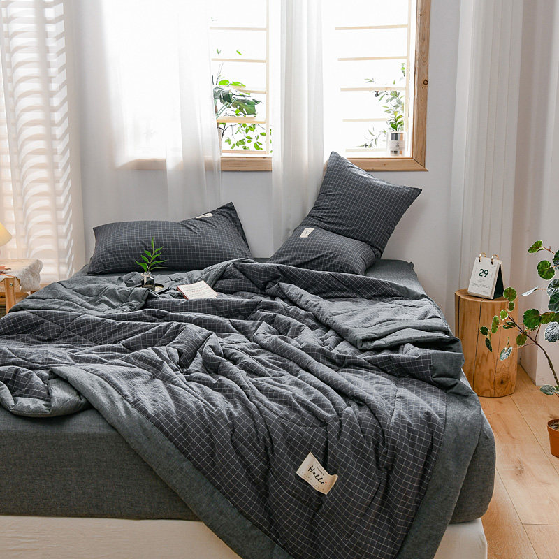 日系全棉色织夏凉被四件套可机洗夏被薄款空调被纯棉春秋款薄被子