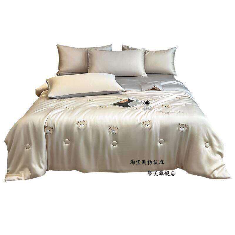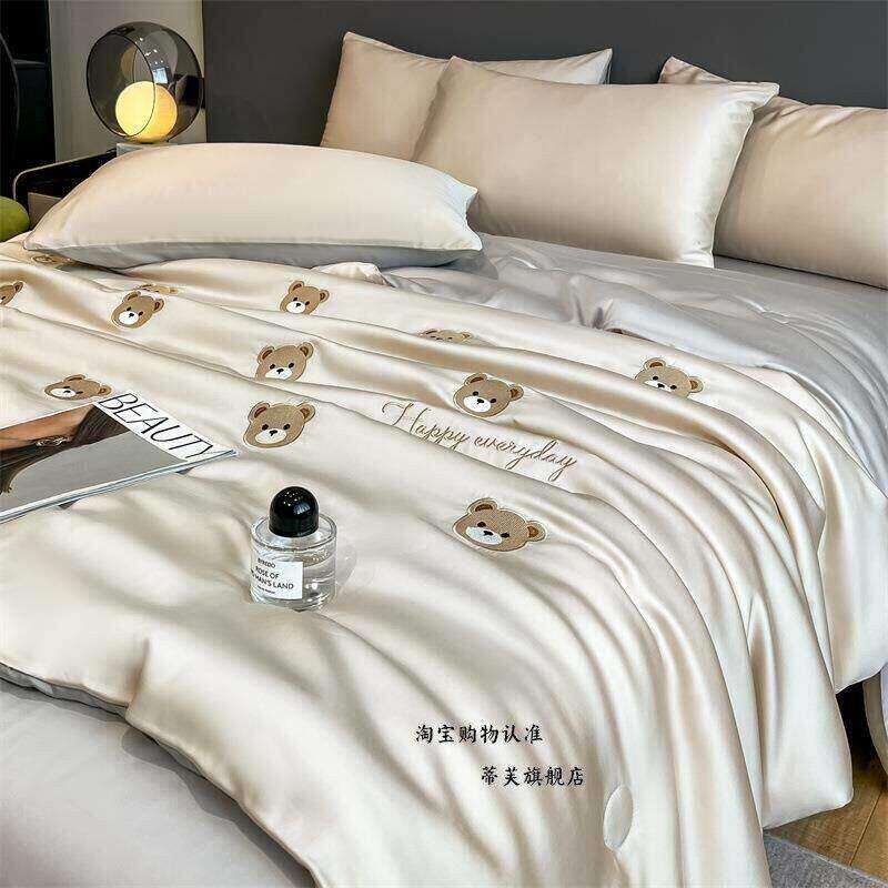床上四件套夏天冰丝刺绣夏凉被可水洗凉感空调被夏季薄款被子礼品