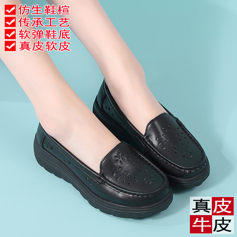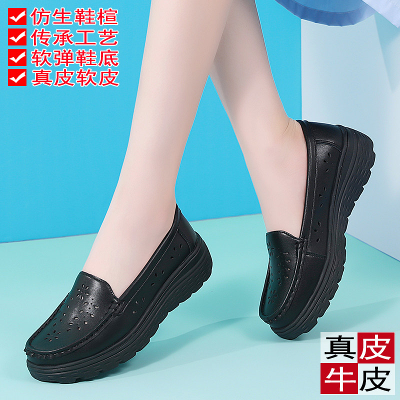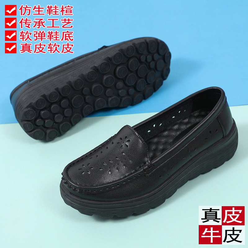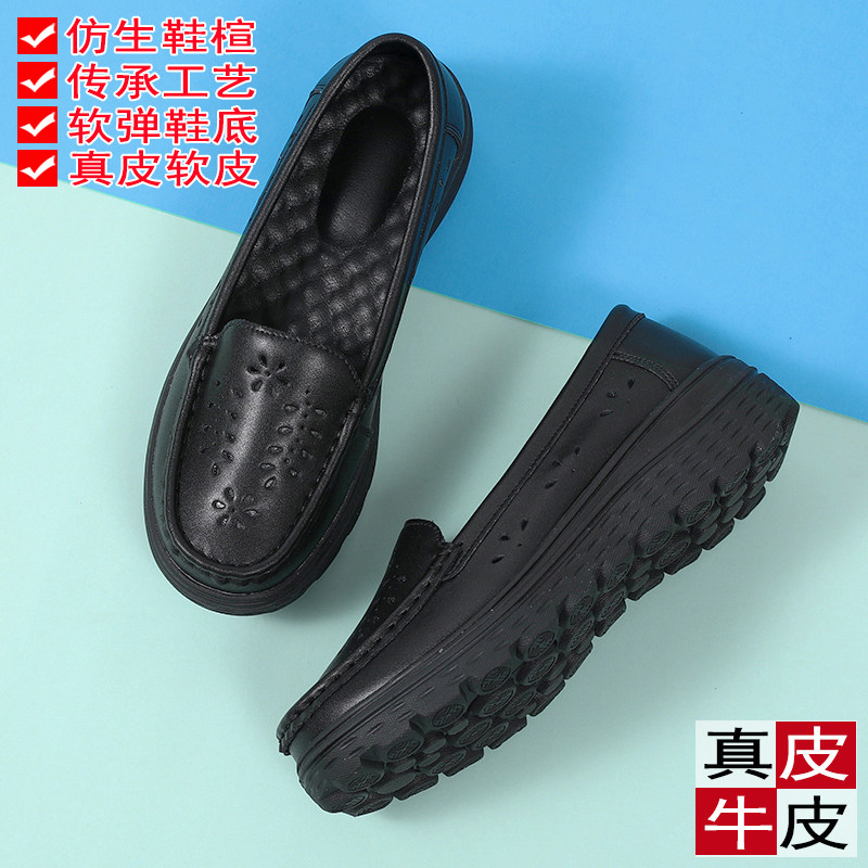 真皮黑色工作鞋子单鞋女2025新款护士鞋夏季凉鞋软底透气不累脚