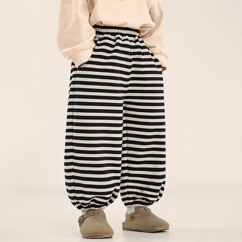 积木城堡男童裤子春秋2026新款春装儿童韩版条纹休闲裤中小童长裤
