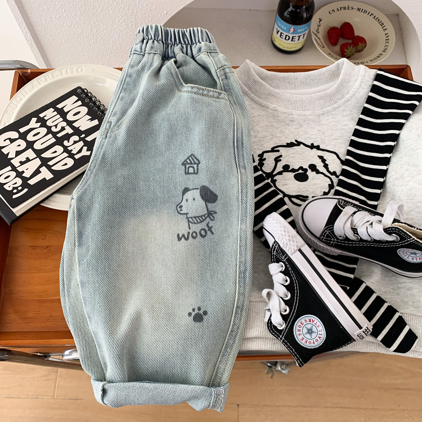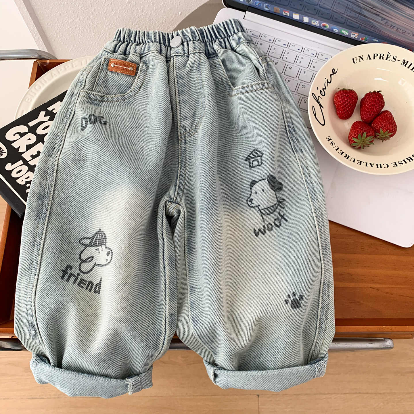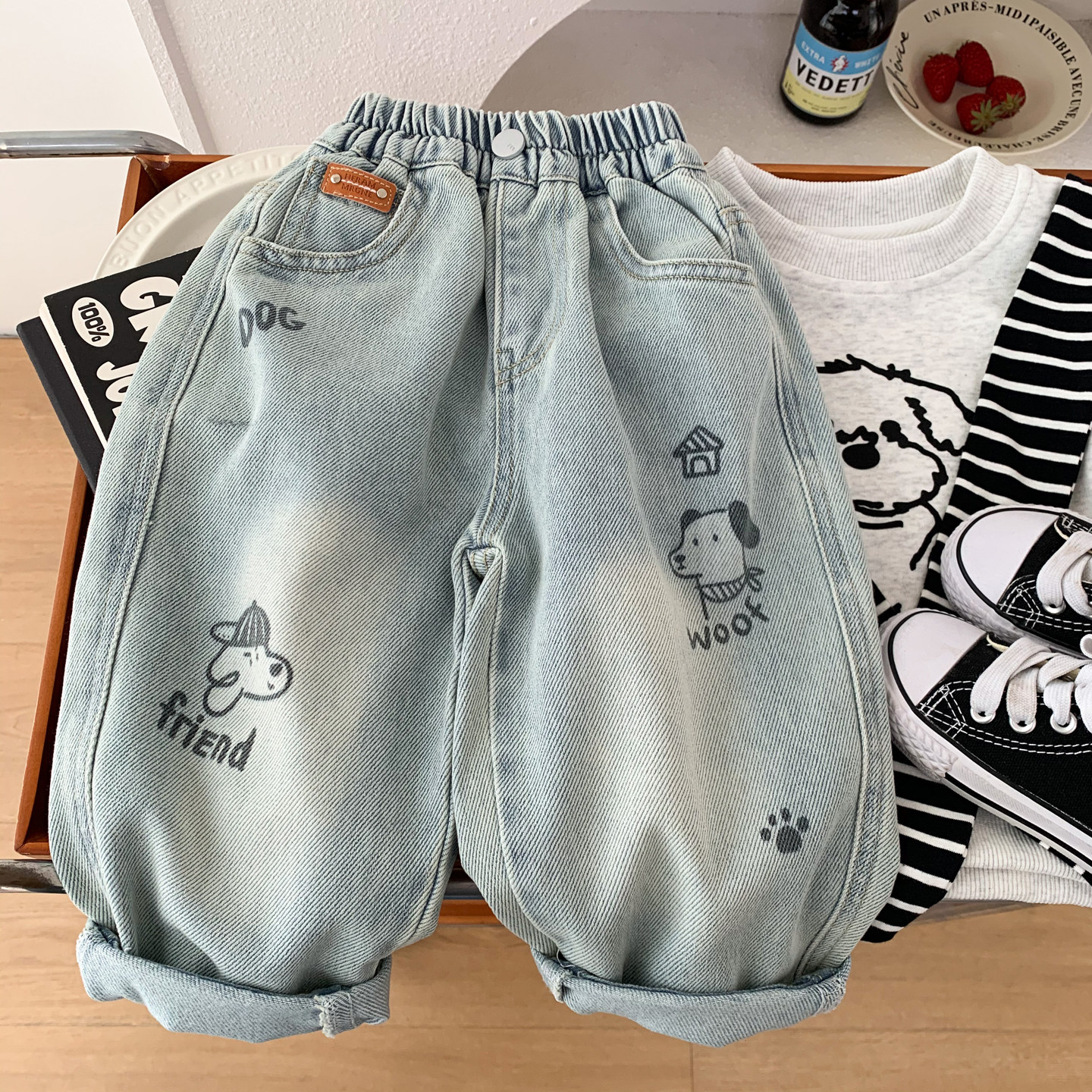 男童春装牛仔裤2026新款儿童韩版卡通柔软裤子中小童春秋洋气长裤