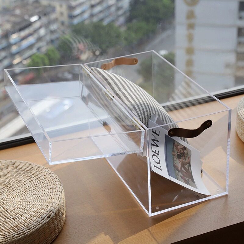简约高级透明亚克力箱茶几两用翻盖超大形储物盒书籍玩具收纳防尘