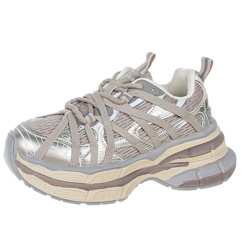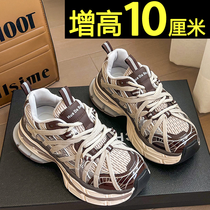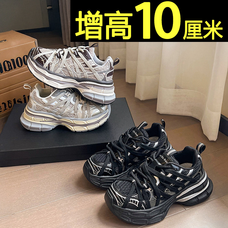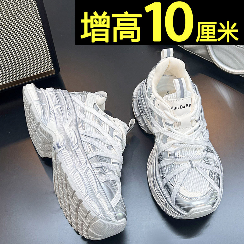 厚底老爹鞋女款2026新款百搭不累脚银色休闲运动鞋10cm内增高女鞋