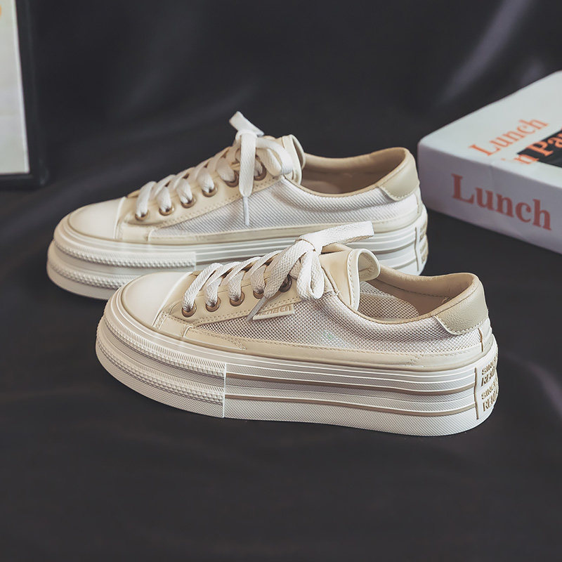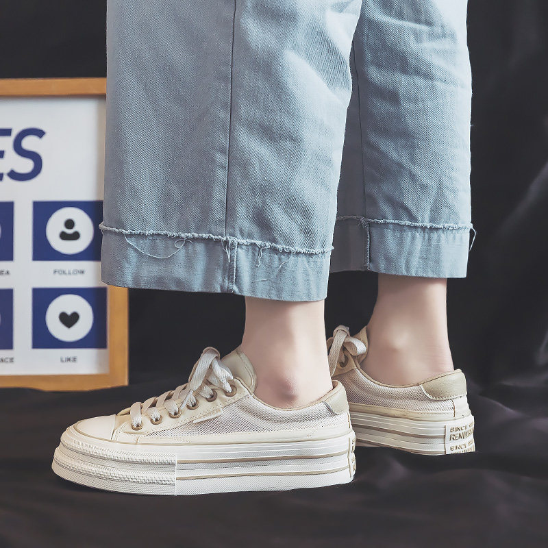 人本帆布鞋女鞋2026春夏款网面透气休闲鞋厚底增高板鞋网眼休闲鞋