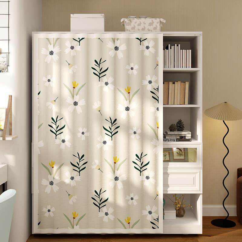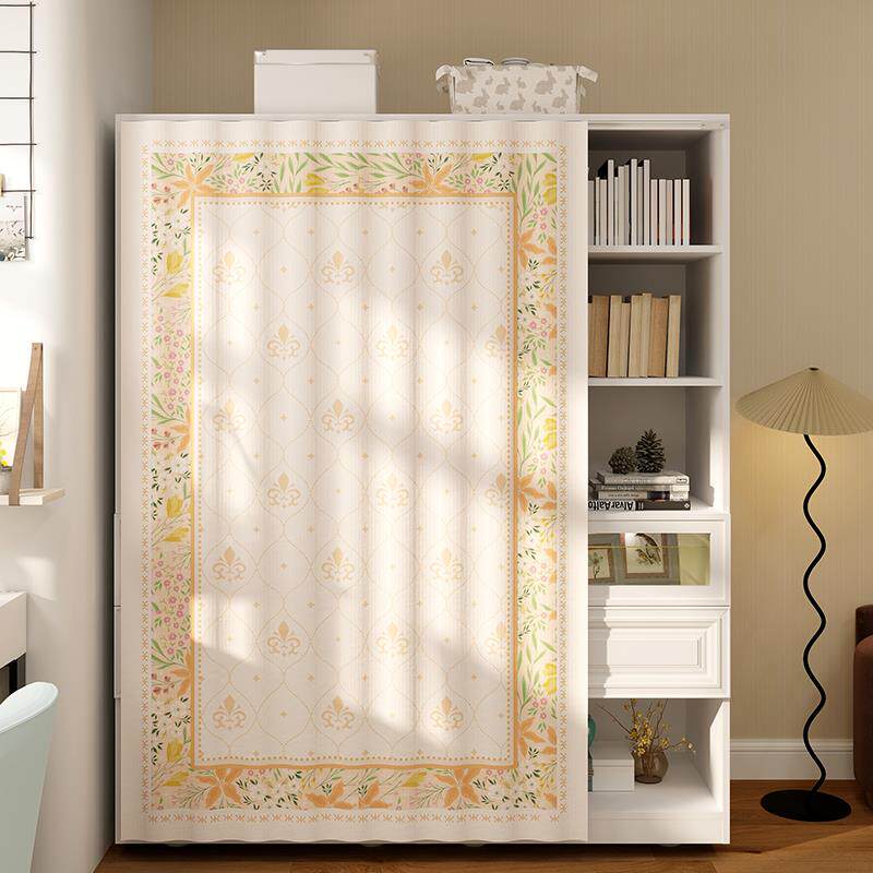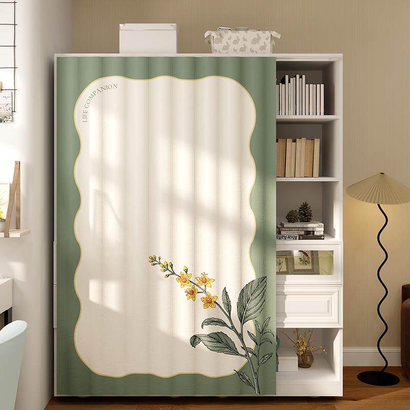 美式书柜防尘帘开放式柜子遮挡帘魔术贴免打孔滑轨拉帘书架遮丑帘
