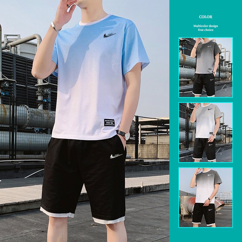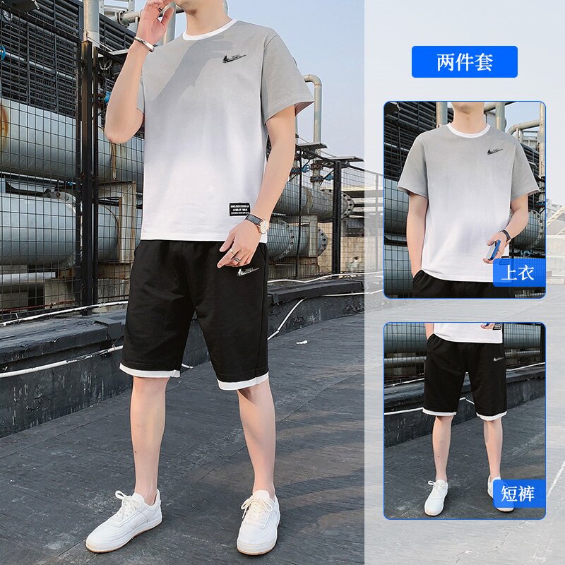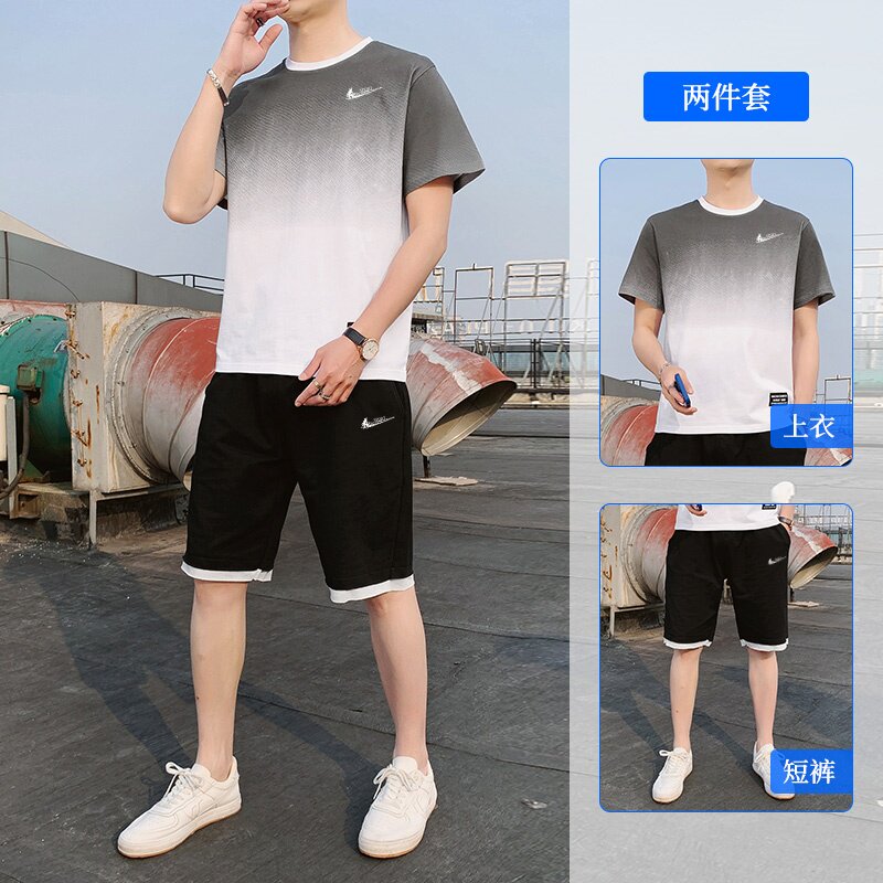 耐克顿运动套装男士夏季纯棉透气宽松短袖T恤青少年搭配帅气一套