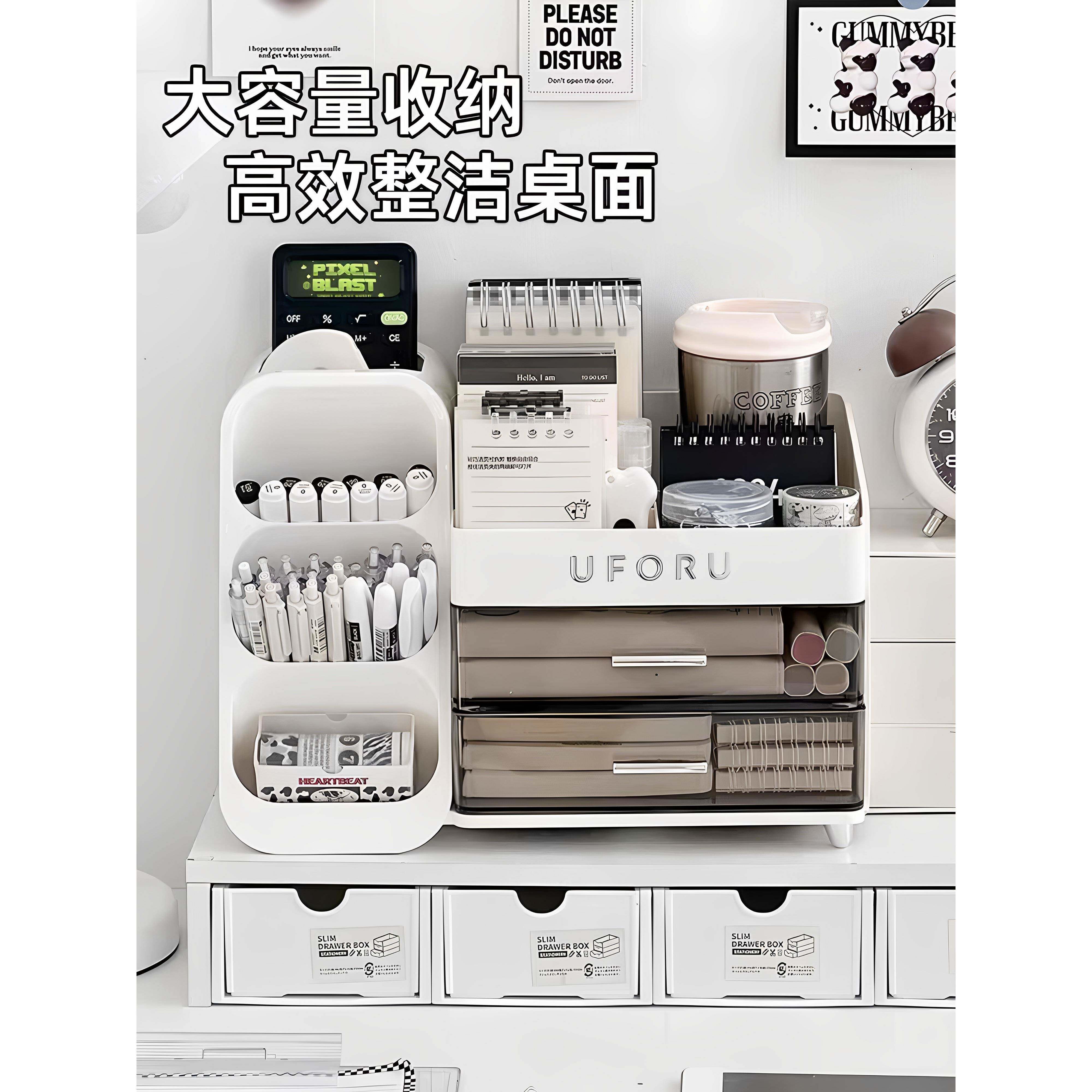抽屉式桌面收纳盒学生办公室书桌文具杂物置物架大容量整理笔筒箱
