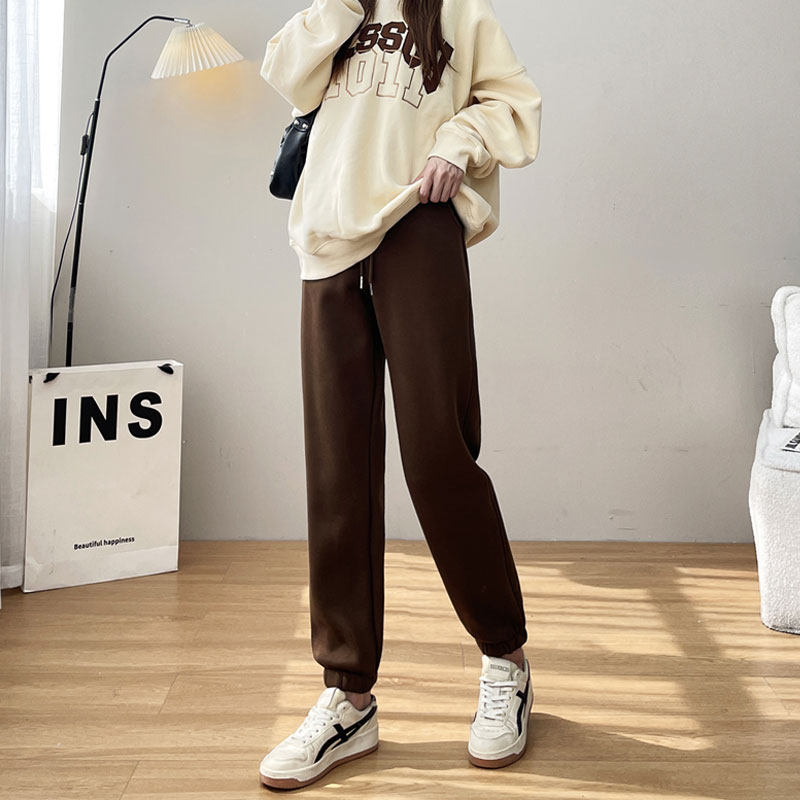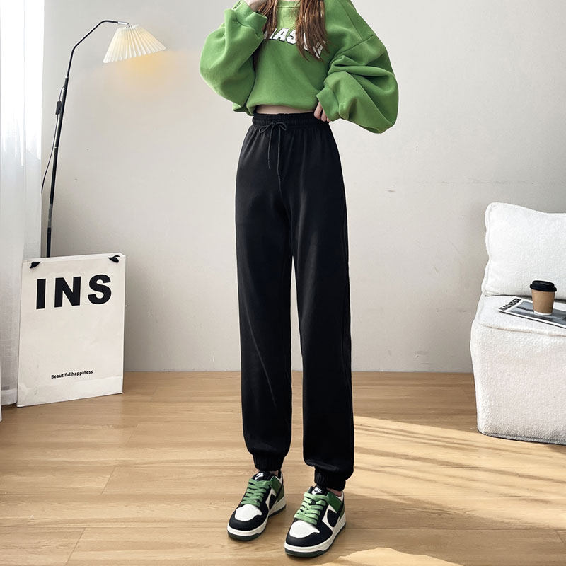 青少年高中初中学生少女加长版裤子秋冬加绒棉质宽松束脚运动卫裤